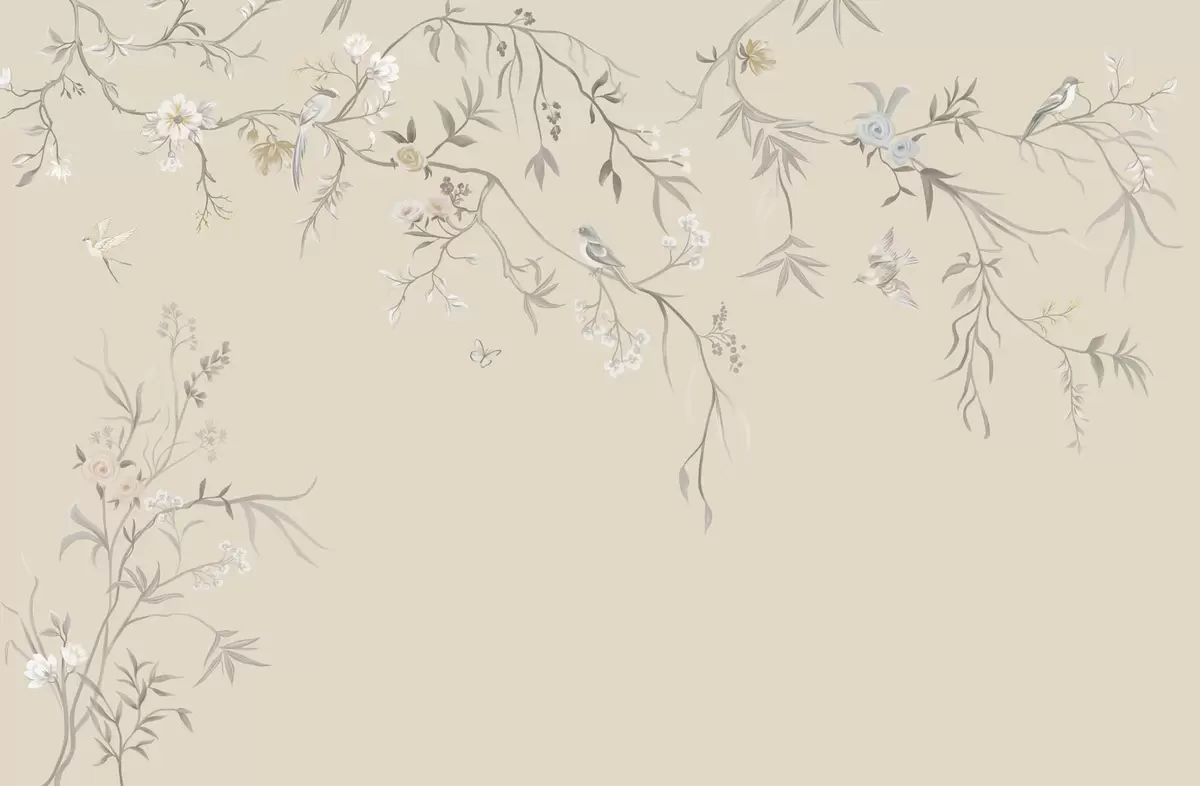 Fototapeta Jasne kwiaty i ptaki na pastelowym tle Nr w05127v2