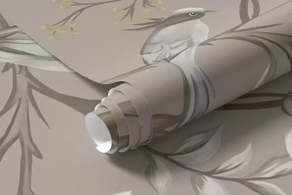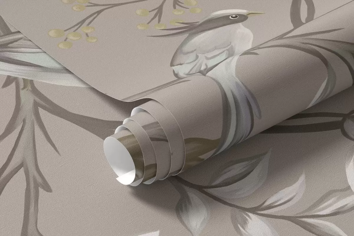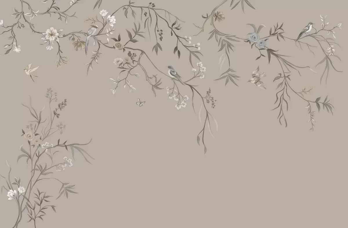 Fototapeta Kwiatowy ornament z ptakami na neutralnym tle Nr w05127v3