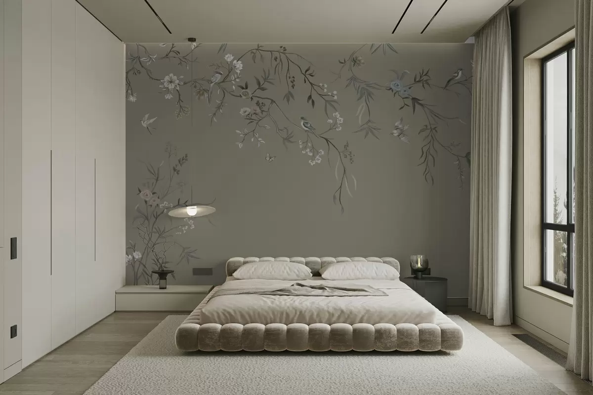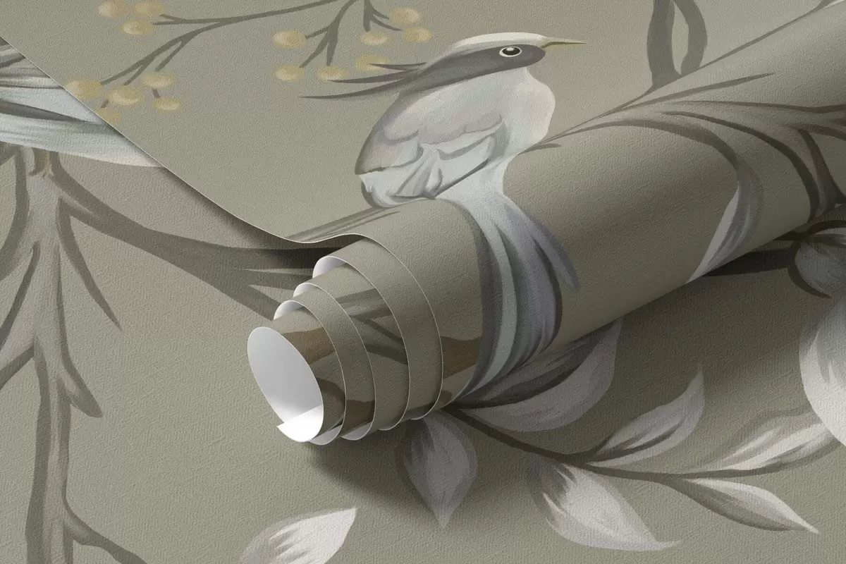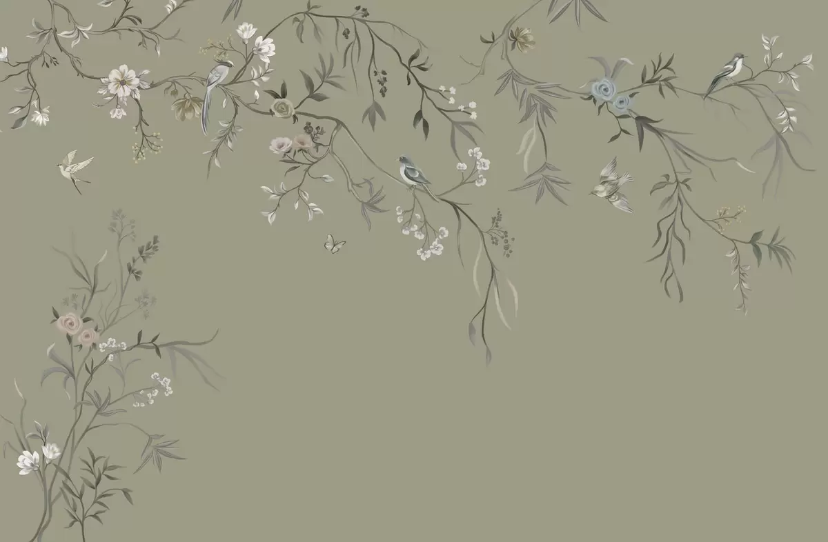 Fototapeta Motyw kwiatowy z ptakami na szarym tle Nr w05127v4
