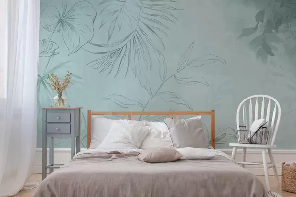 Fototapeta Liniowe rośliny na delikatnym zielonkawym tle Nr w05128v1