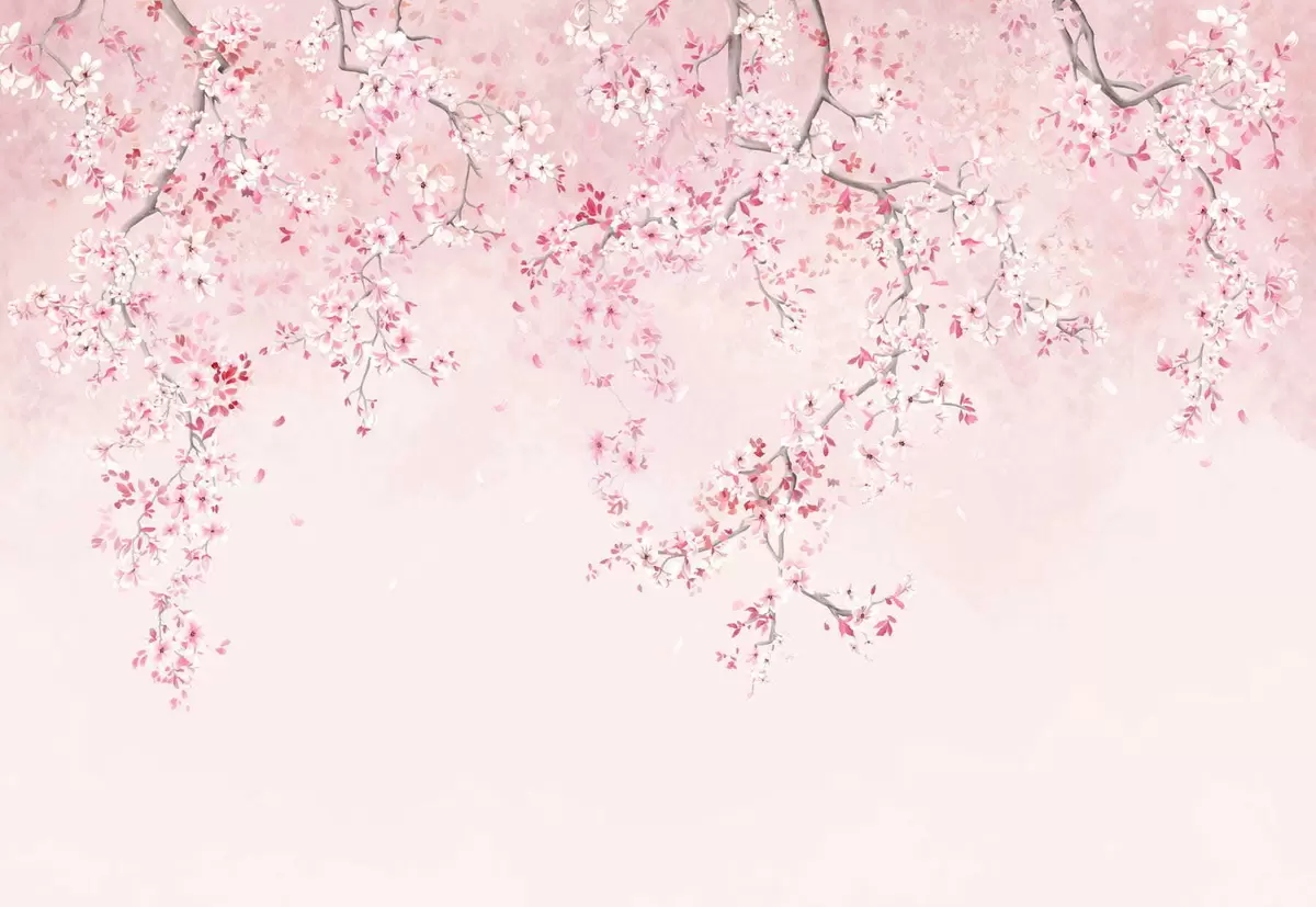 Fototapeta Gałęzie z różowymi kwiatami na delikatnym pastelowym tle Nr w05129v1