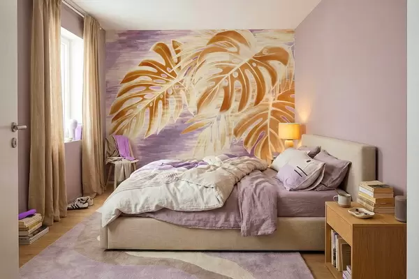 Fototapeta Liście w ciepłych odcieniach pomarańczy na fioletowym tle Nr w05130v2