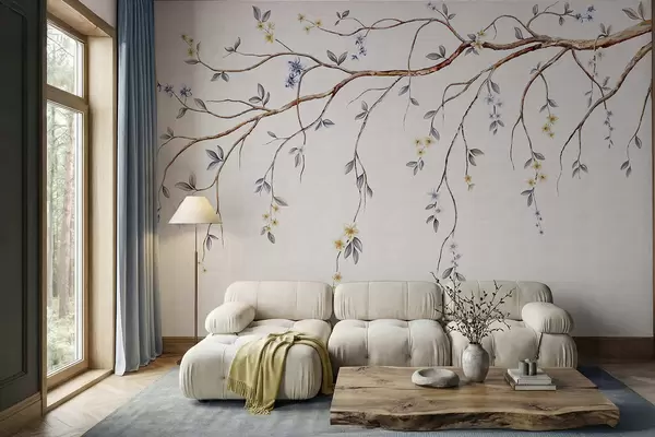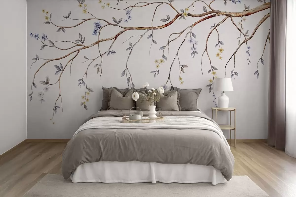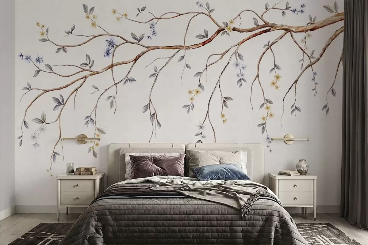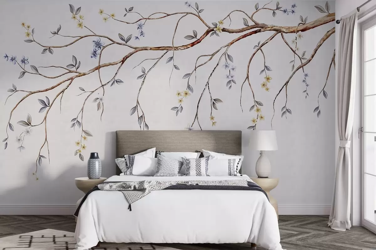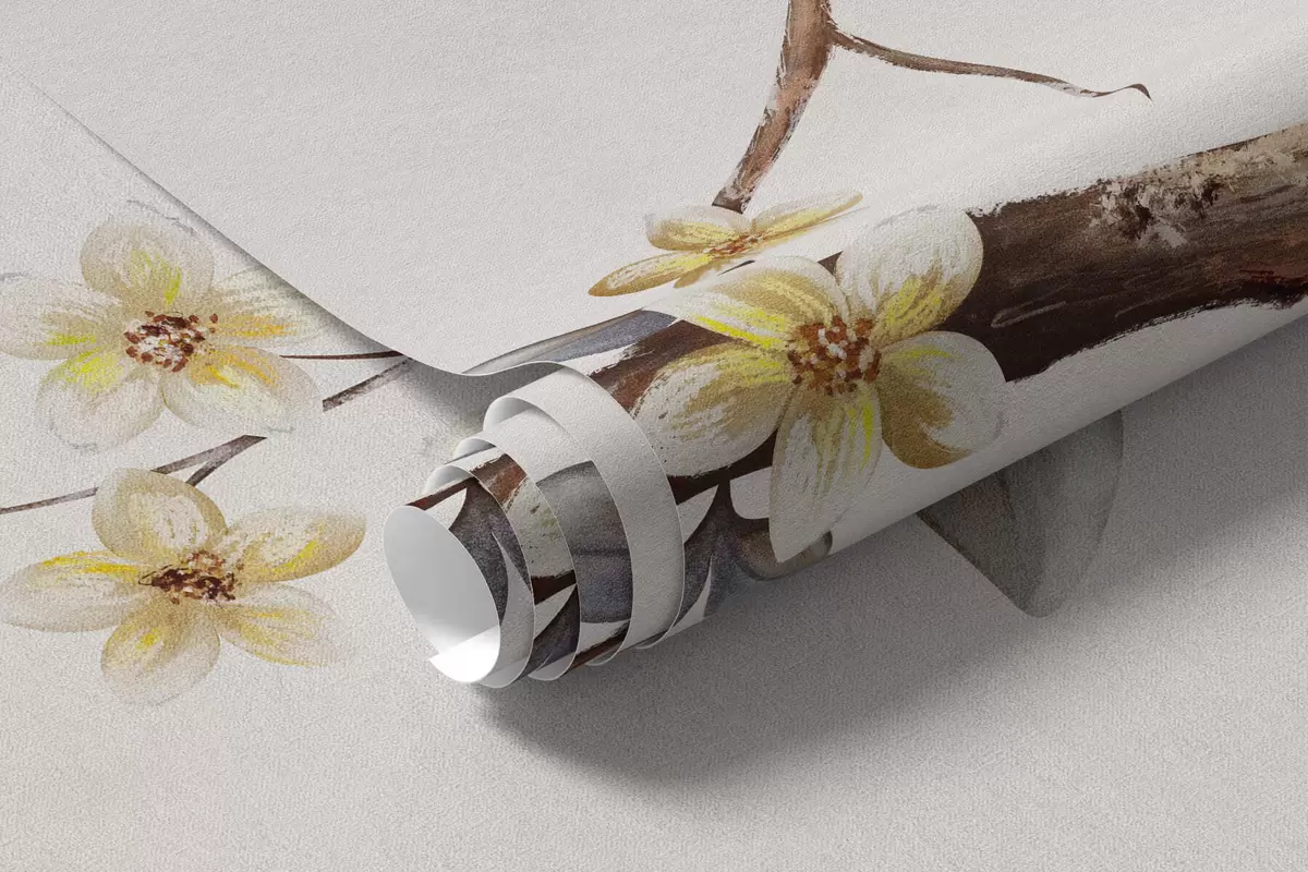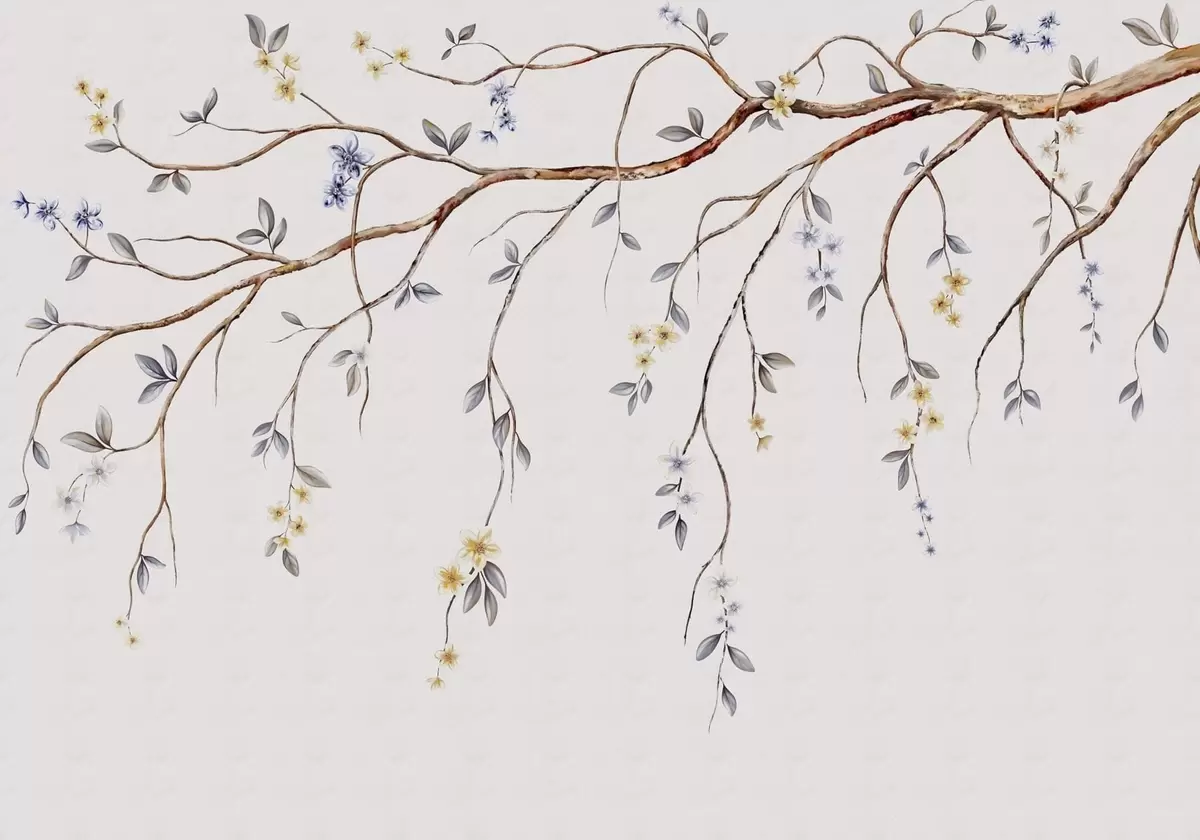 Fototapeta Cienkie gałęzie z małymi kwiatami na jasnym tle Nr w05145
