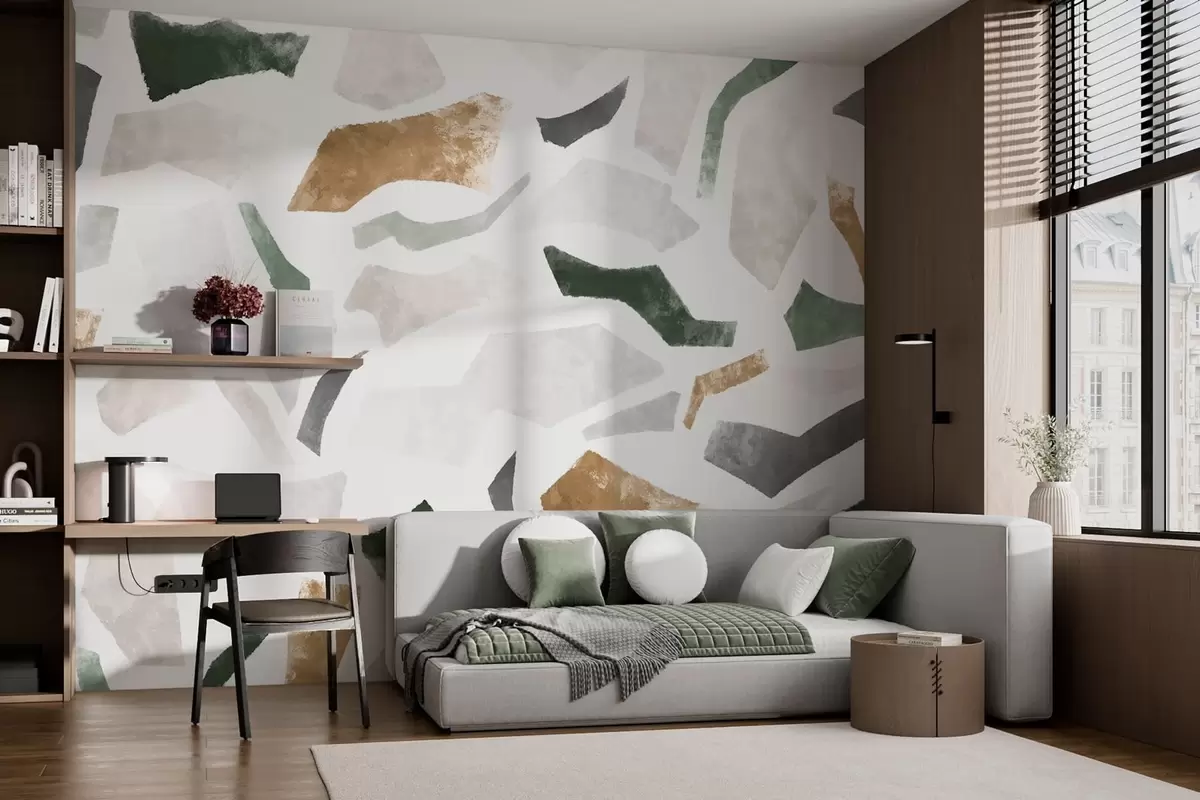 Fototapeta Fragmenty o abstrakcyjnej fakturze w odcieniach zieleni i beżu Nr w05146