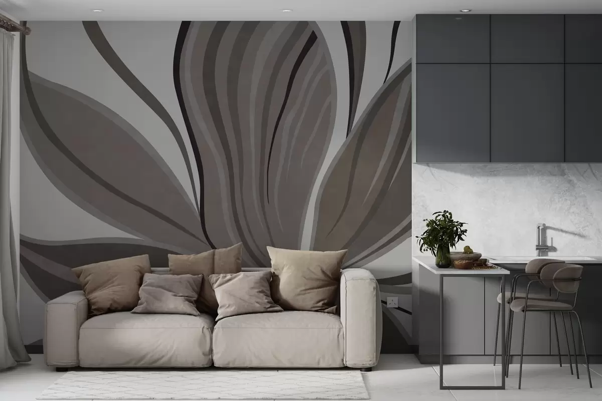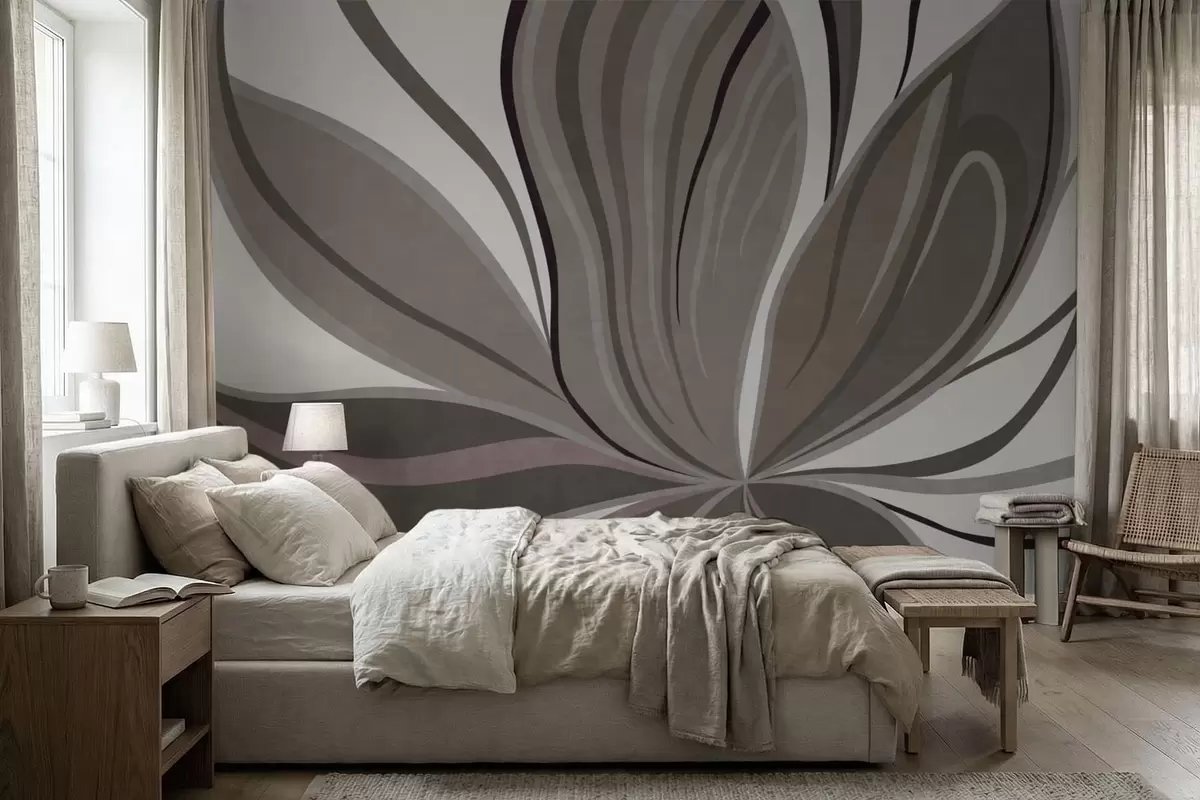 Fototapeta Abstrakcyjny kwiat o delikatnych liniach w odcieniach szaro-beżowych Nr w05147v1