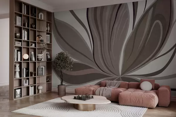 Fototapeta Abstrakcyjny kwiat o delikatnych liniach w odcieniach szaro-beżowych Nr w05147v1