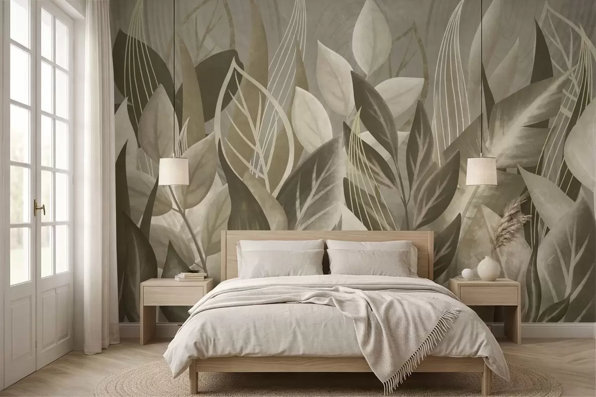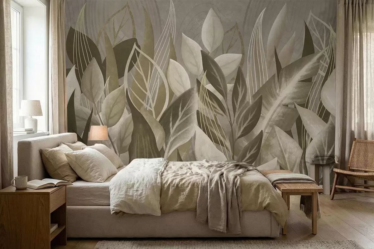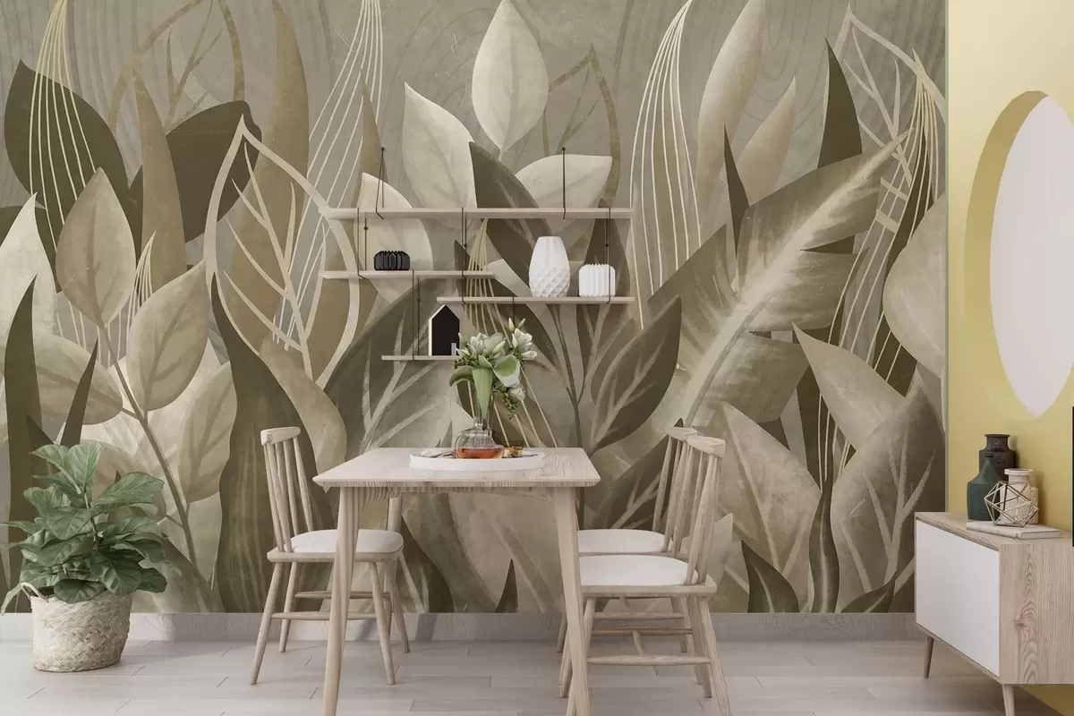 Fototapeta Abstrakcyjne liście w odcieniach beżu i zieleni Nr w05148
