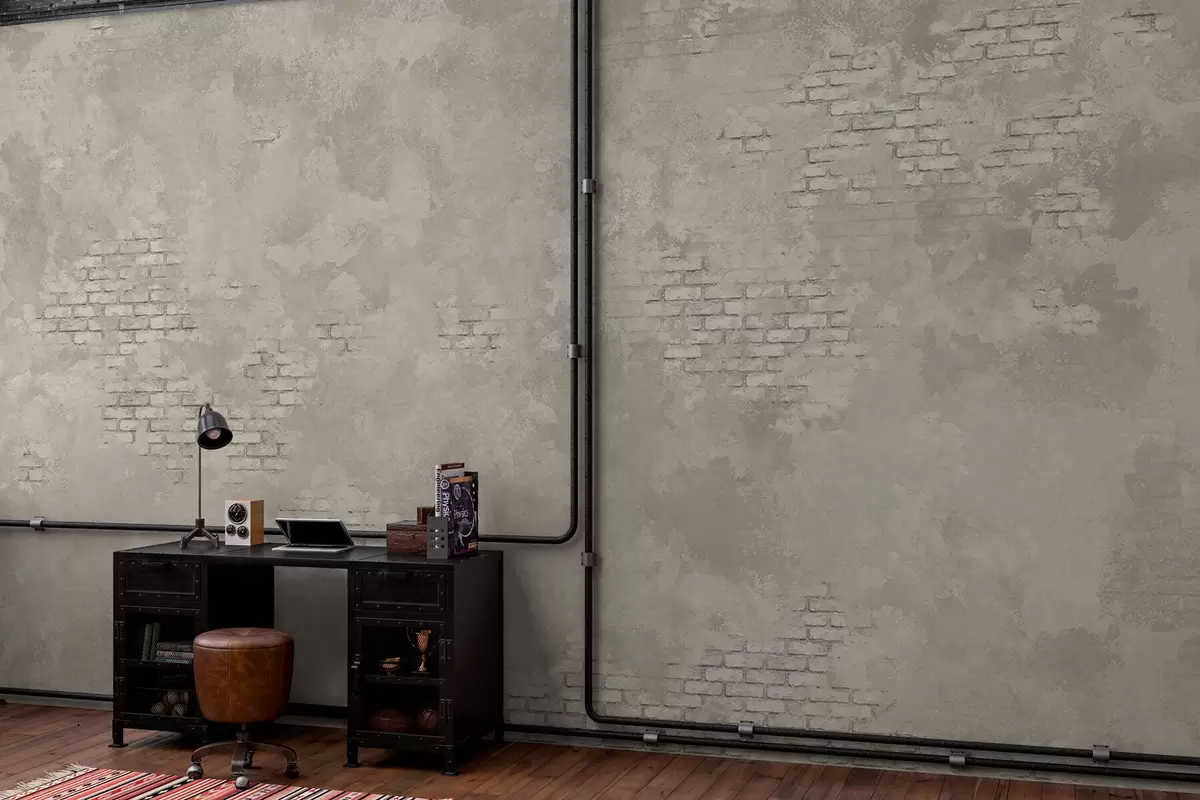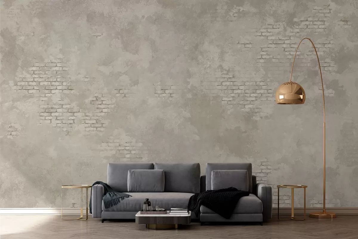 Fototapeta Jasny tynk w stylu grunge z fragmentami odsłoniętej cegły Nr w05161v1