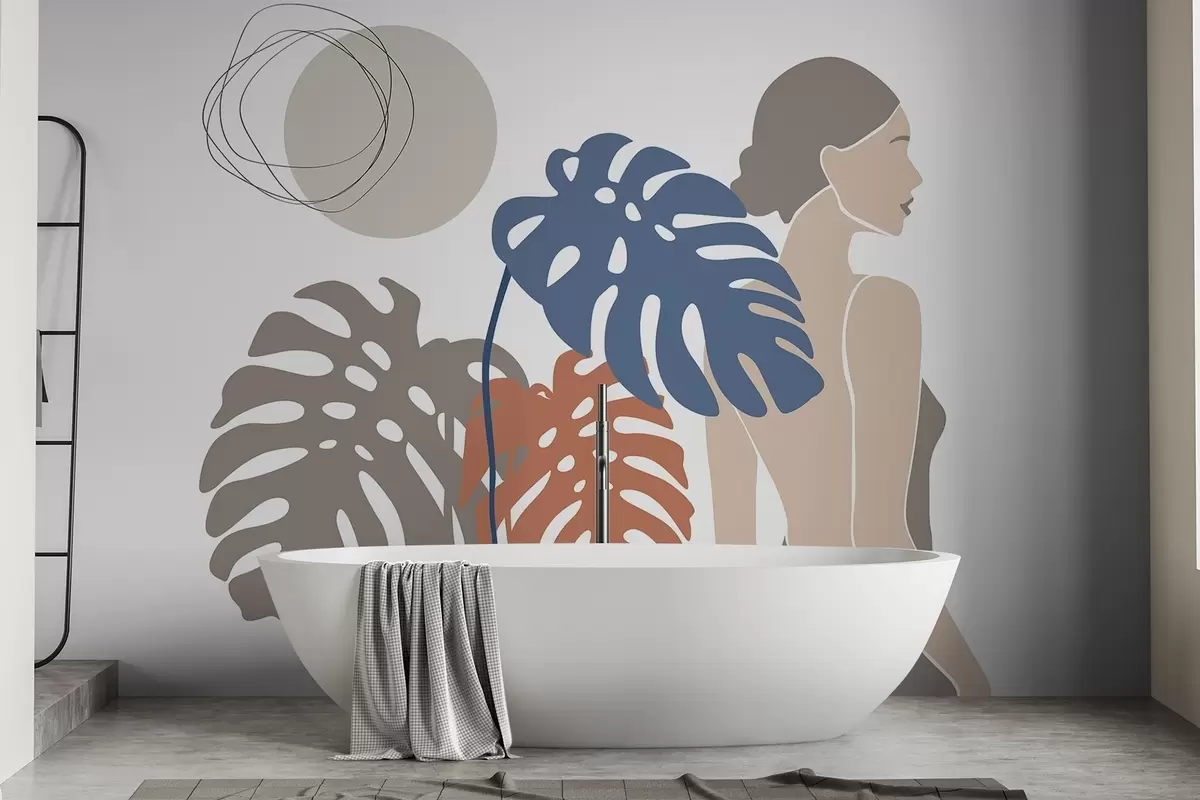 Fototapeta Sylwetka kobiety na tle tropikalnych liści Nr w05192