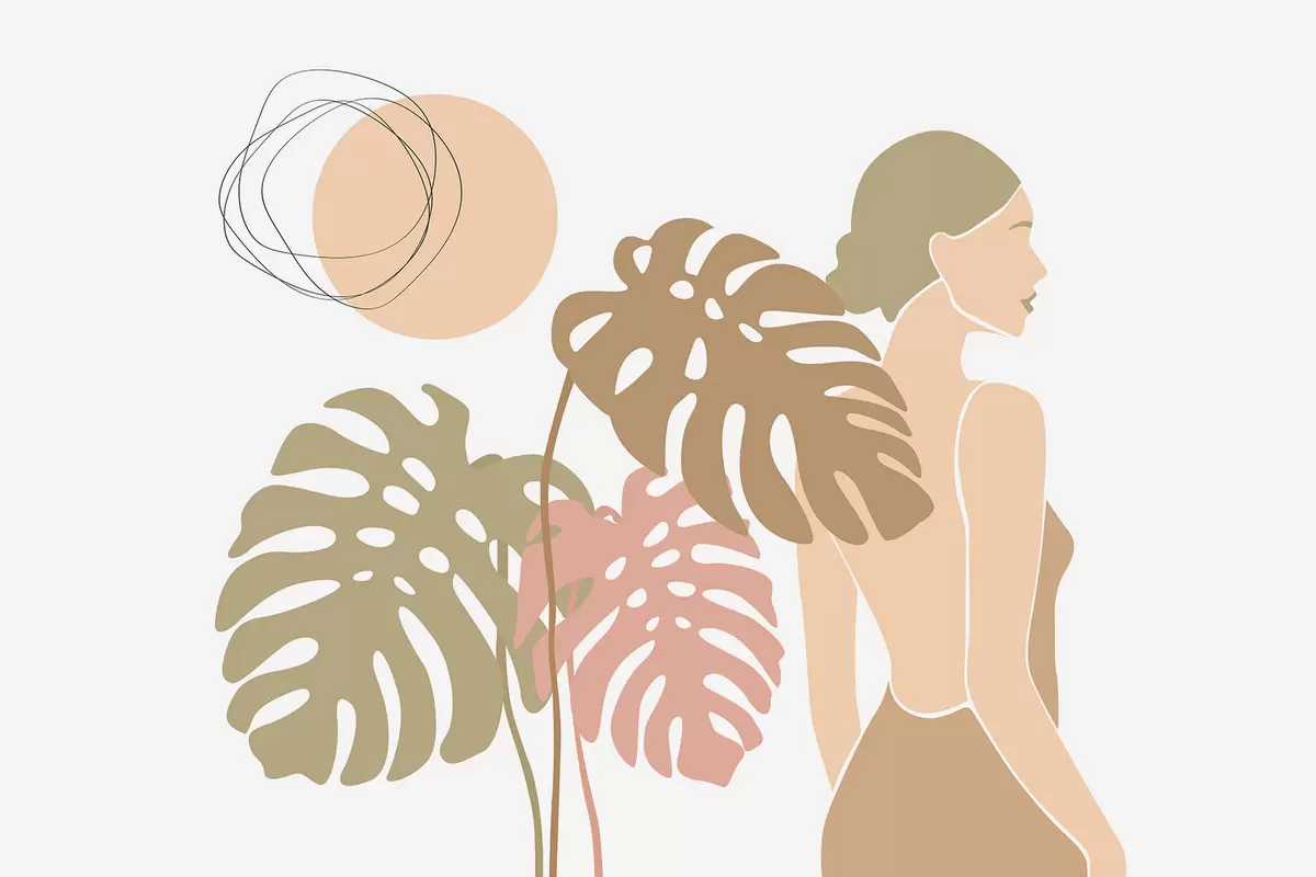 Fototapeta Sylwetka kobiety na tle tropikalnych liści Nr w05192v1