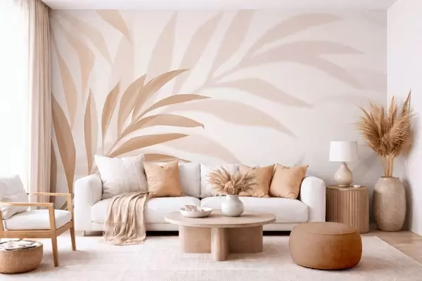 Fototapeta duże, zakrzywione liście palmowe w odcieniach beżu i brązu Nr w05211