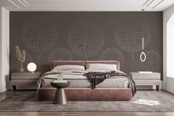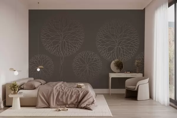 Fototapeta Fantazyjne drzewa o liniowych kształtach i bujnych koronach w eleganckich odcieniach mokki Nr w05213v1