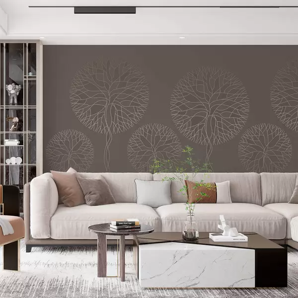 Fototapeta Fantazyjne drzewa o liniowych kształtach i bujnych koronach w eleganckich odcieniach mokki Nr w05213v1