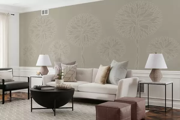 Fototapeta Fantazyjne drzewa o liniowych kształtach i bujnych koronach w odcieniach beżu Nr w05213v3