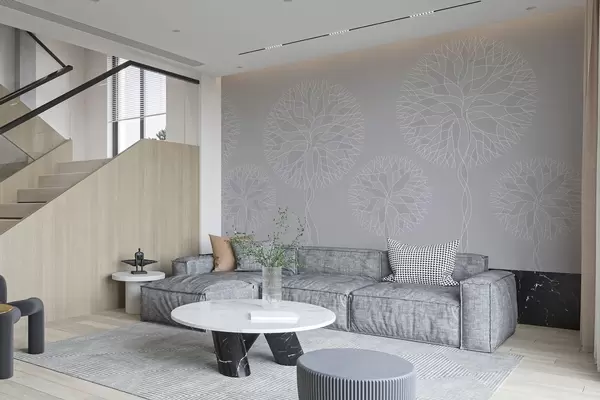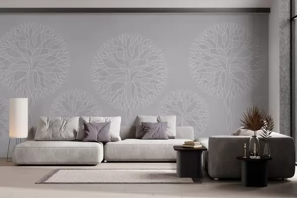 Fototapeta Fantazyjne drzewa o liniowych kształtach i bujnych koronach w jasnoszarych odcieniach Nr w05213v4