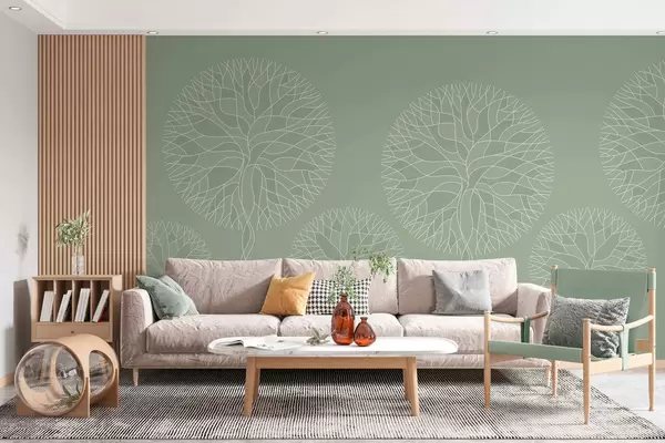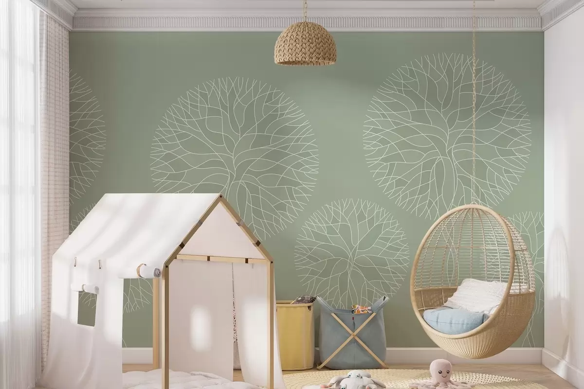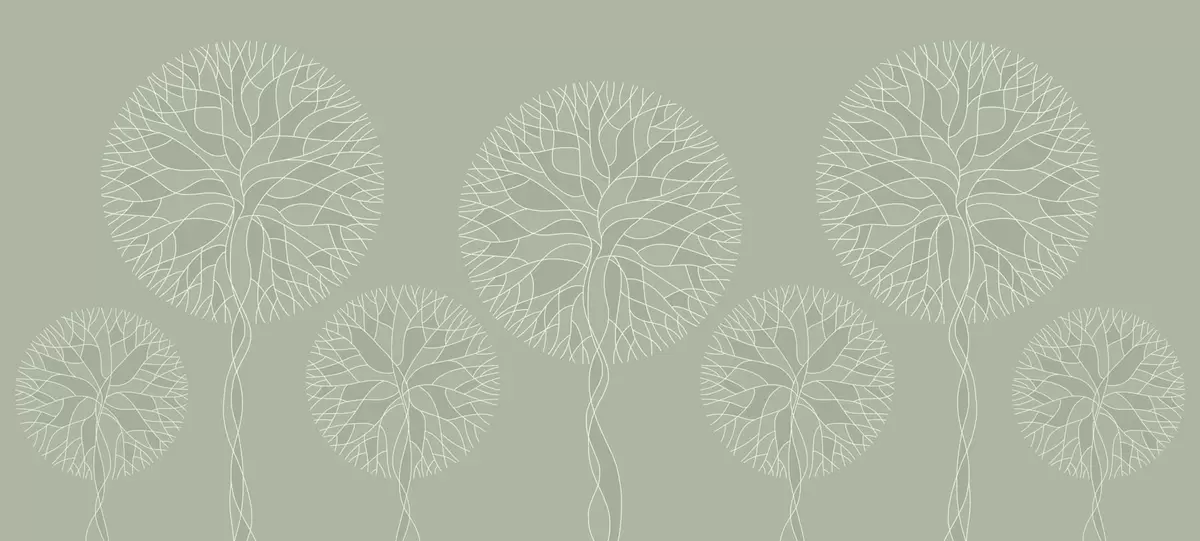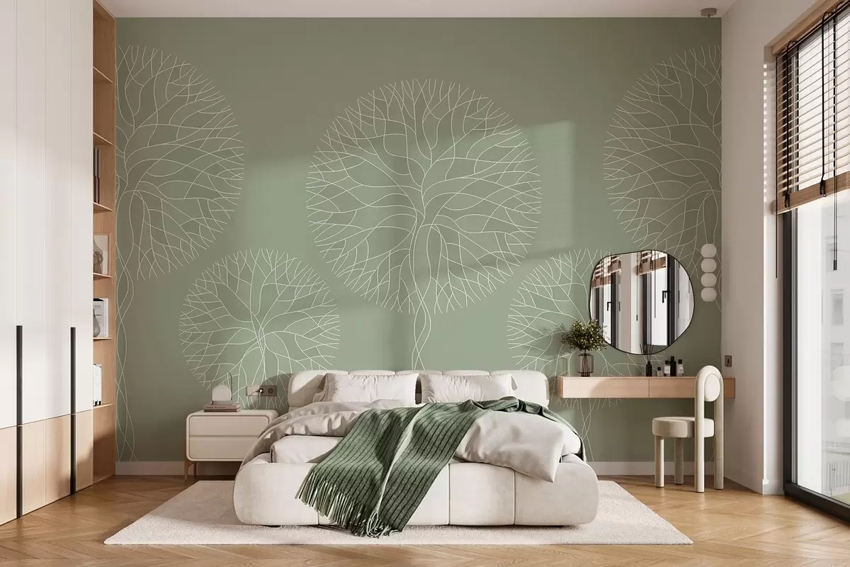 Fototapeta Fantazyjne drzewa o liniowych kształtach i bujnych koronach w jasnozielonych odcieniach Nr w05213v6