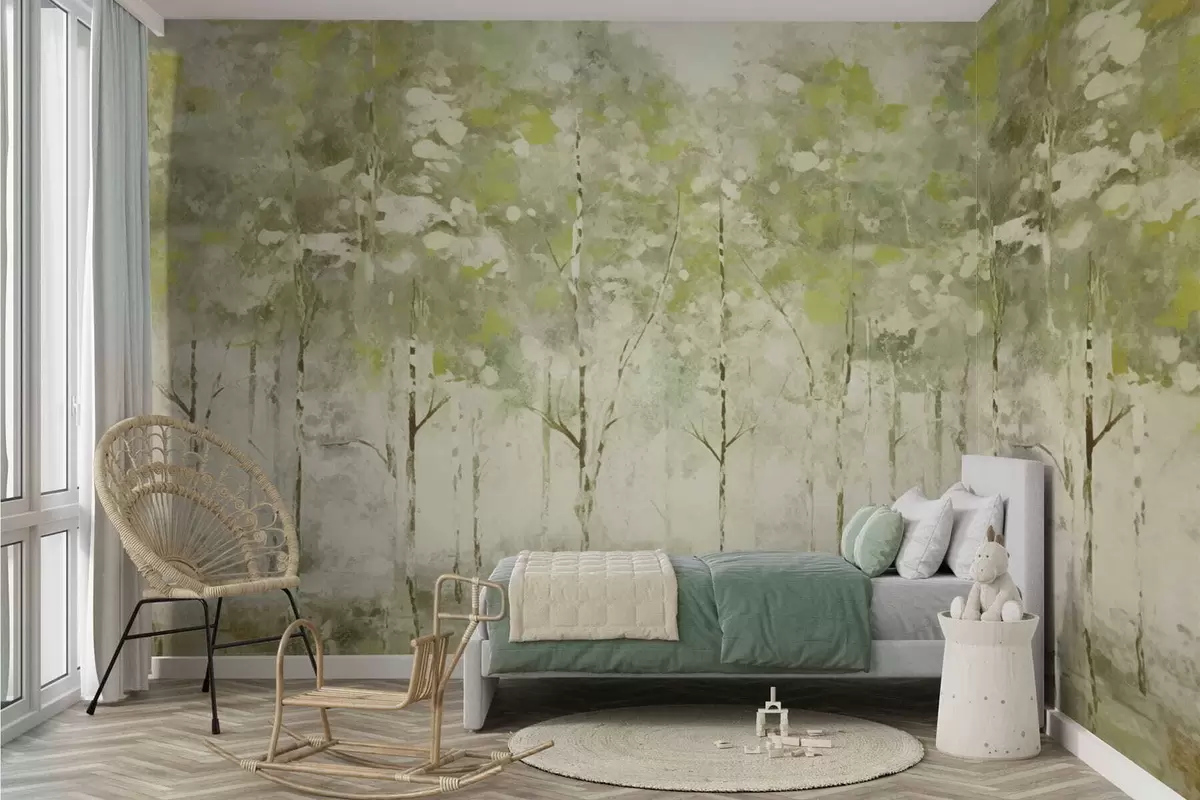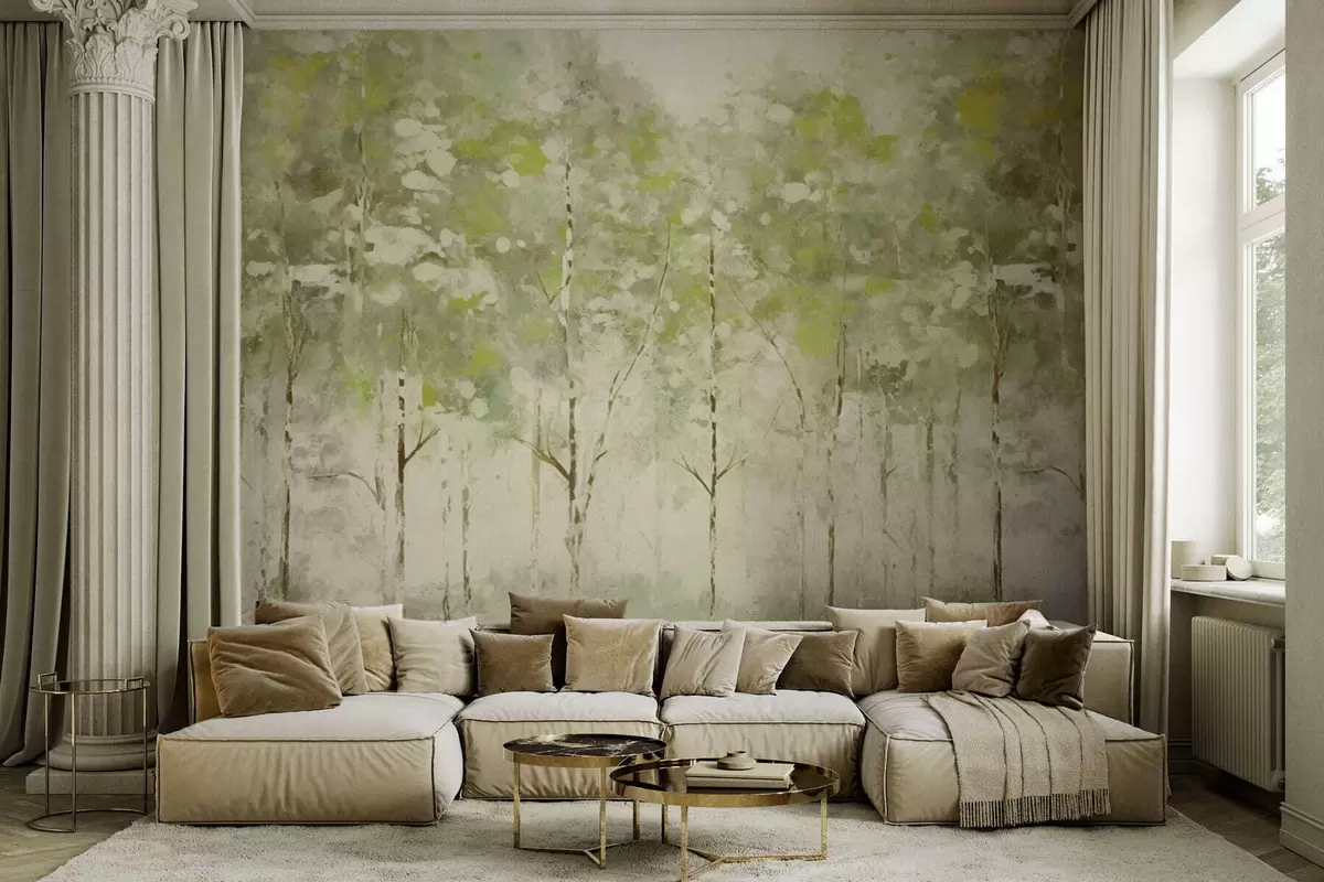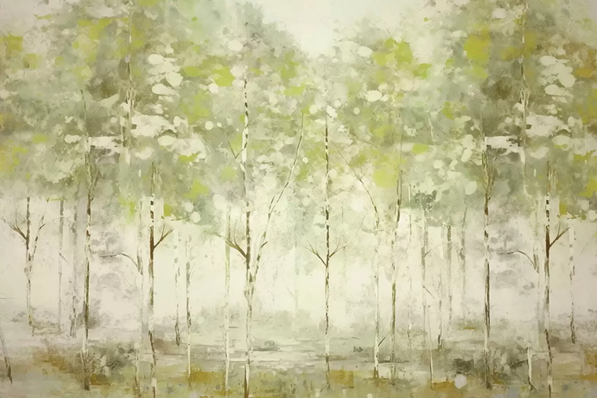 Fototapeta Stylizowany las z smukłymi drzewami w odcieniach zieleni Nr w05221v1