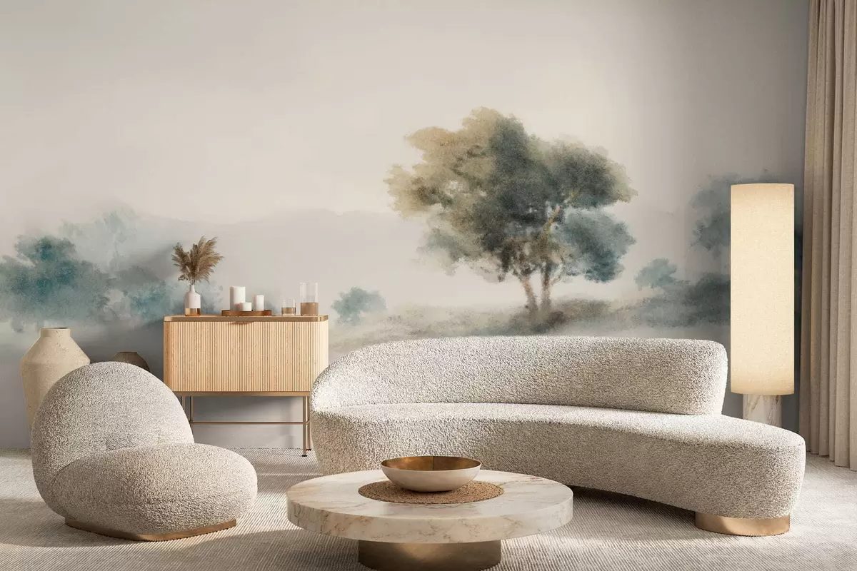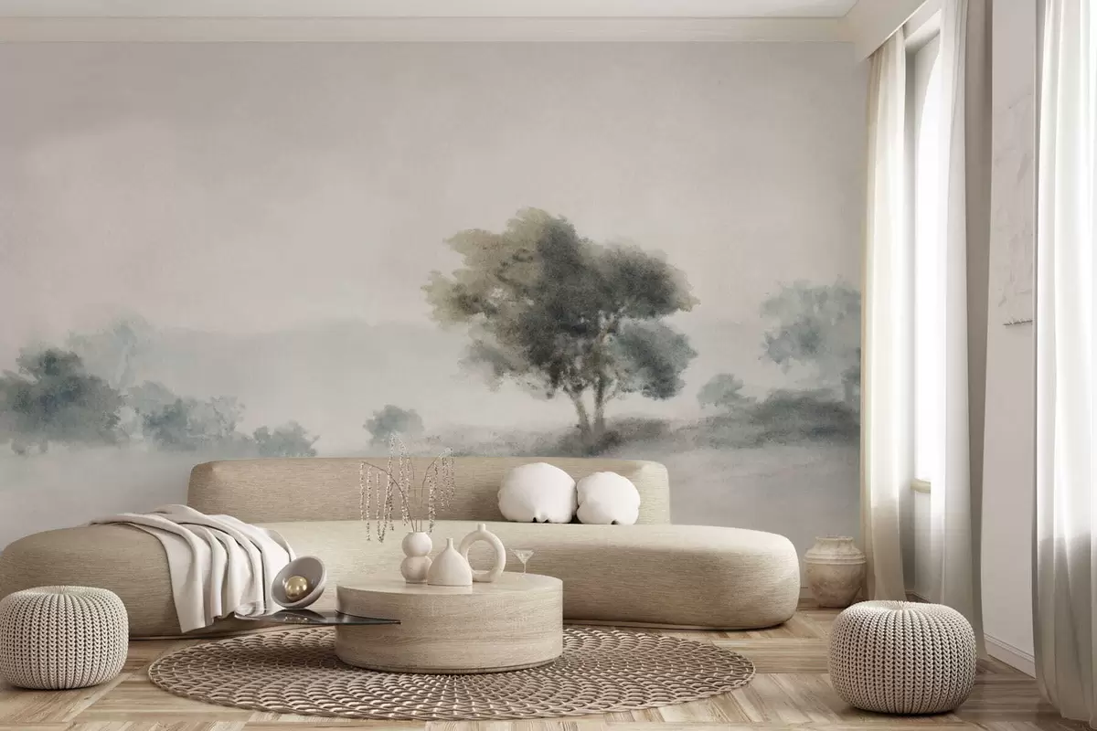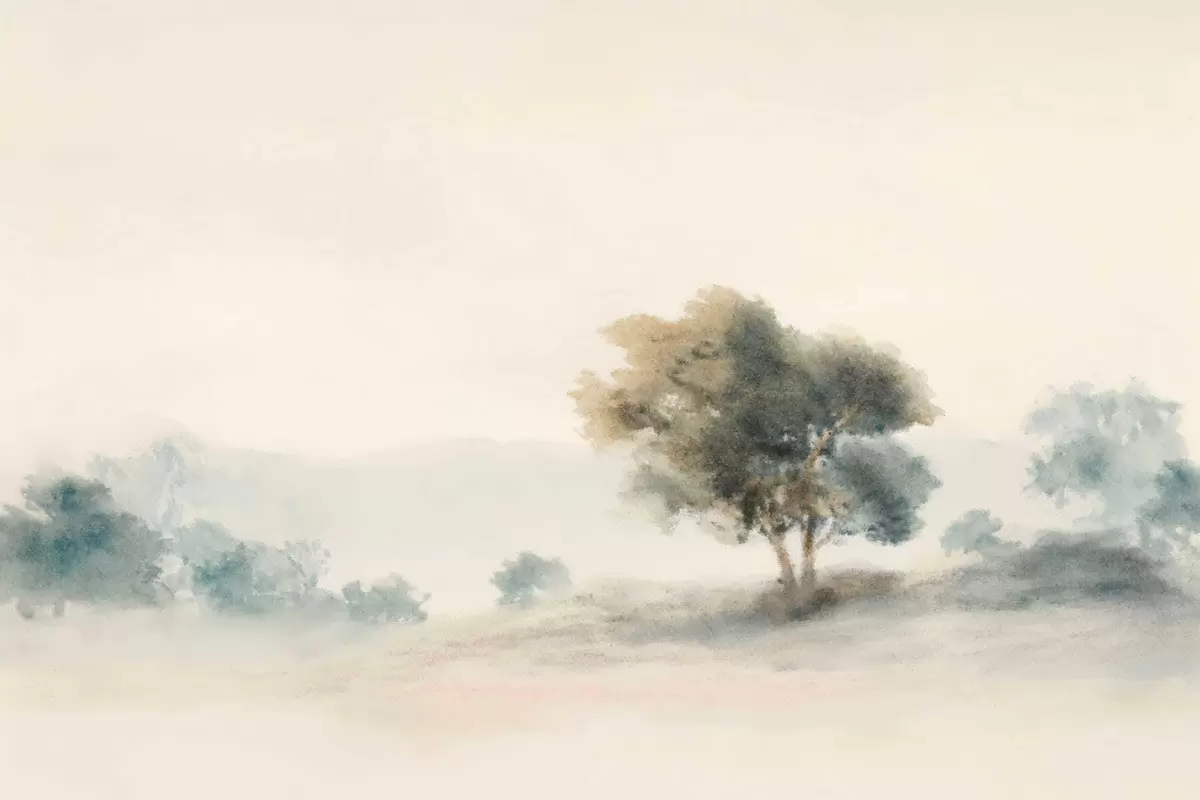 Fototapeta Spokojny krajobraz z drzewem i delikatnymi, zamazanymi kształtami Nr w05223v1