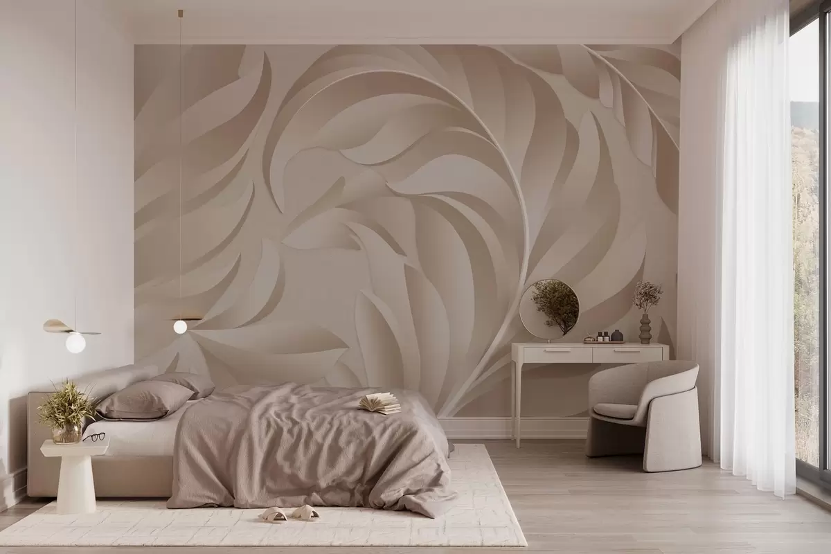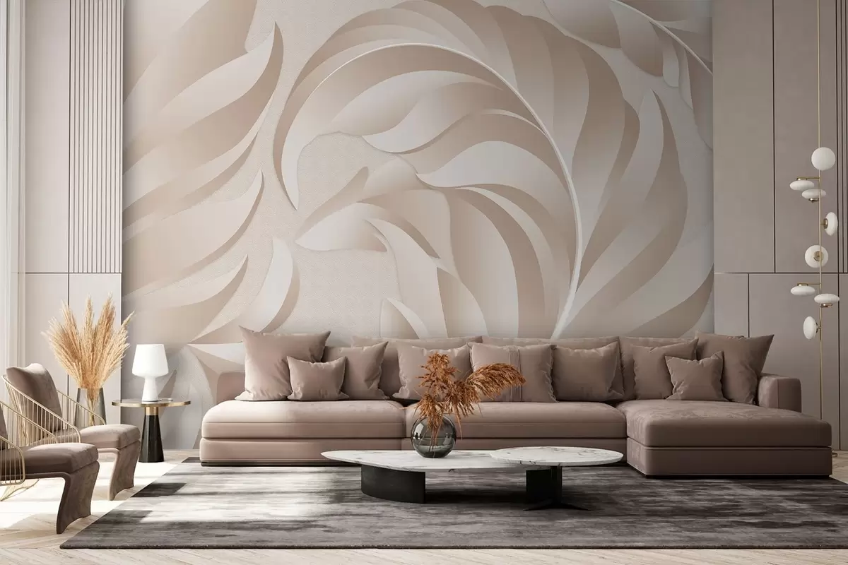 Fototapeta duże teksturowane pióra w odcieniach beżu i pudrowych kolorach Nr w05231