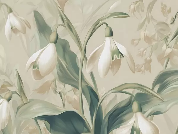 Fototapeta kwitnące przebiśniegi na beżowym tle Nr w05234