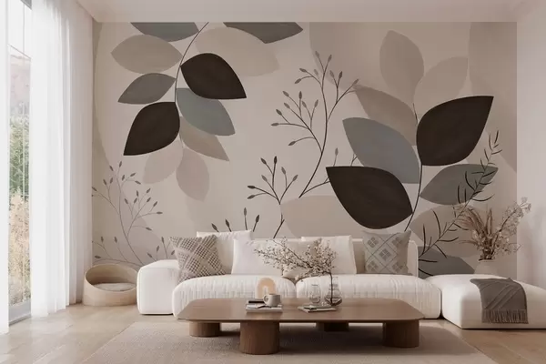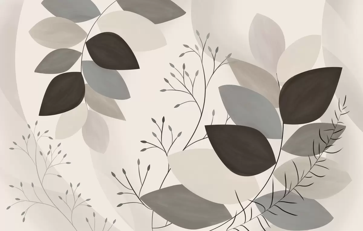 Fototapeta liście i trawy w odcieniach beżu, szarości i brązu Nr w05237