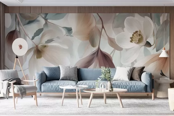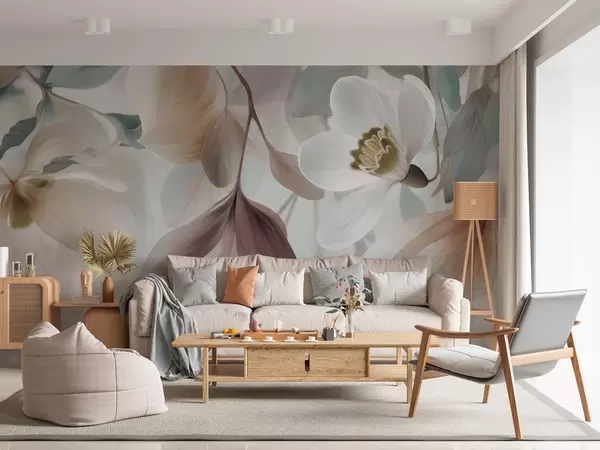 Fototapeta delikatna kompozycja z kwiatów i liści w pastelowych odcieniach Nr w05240