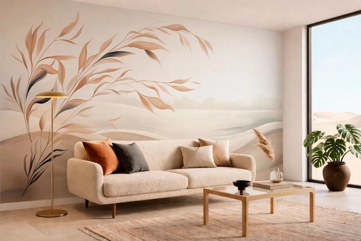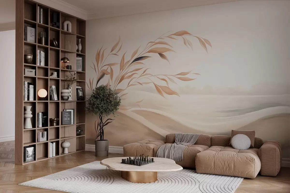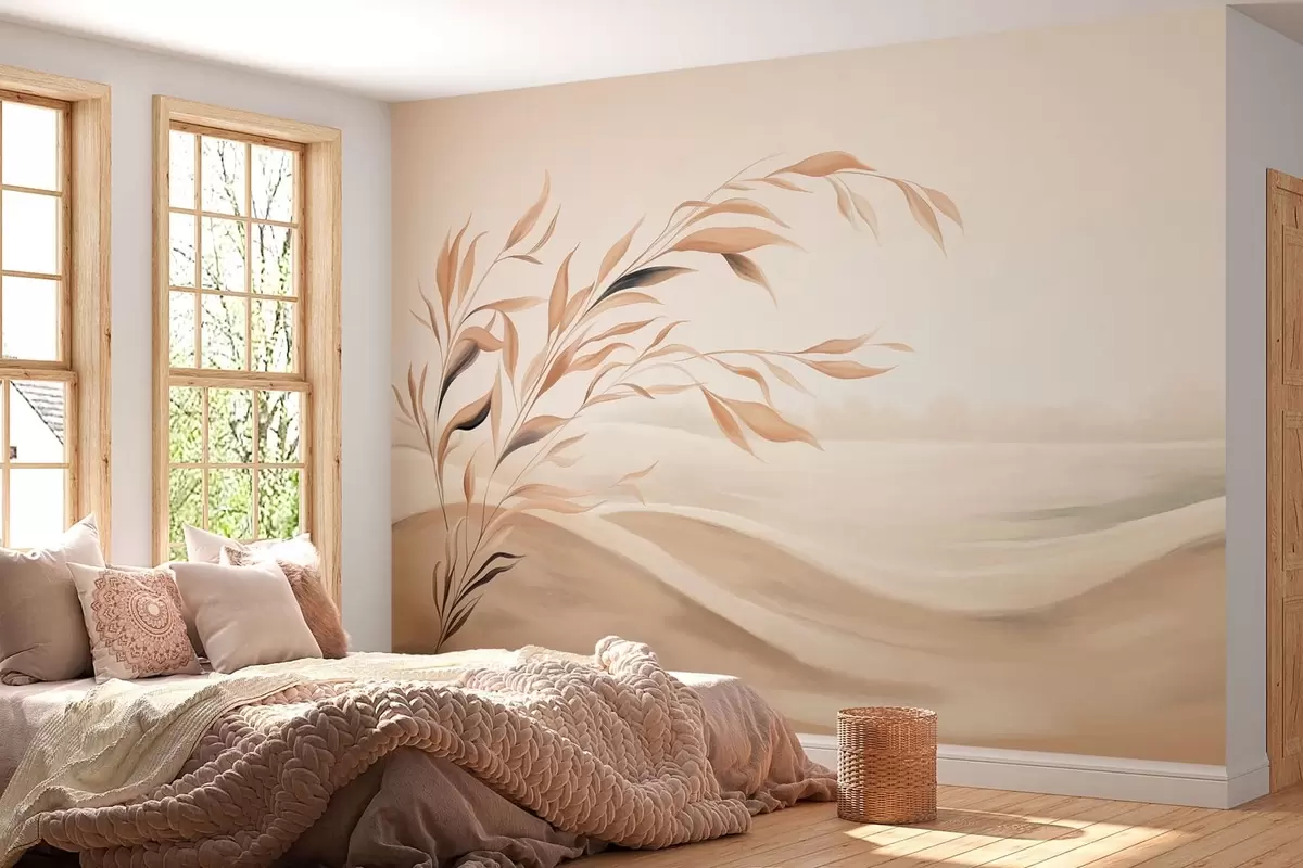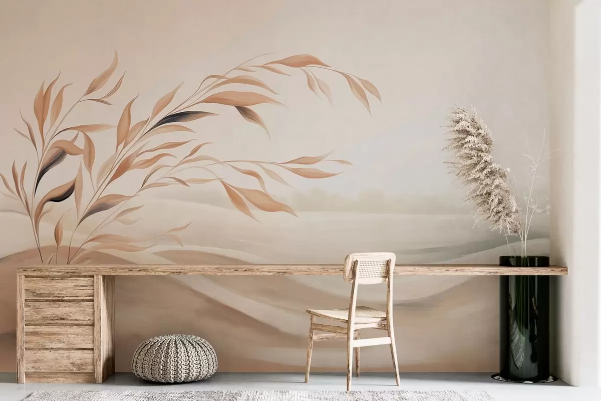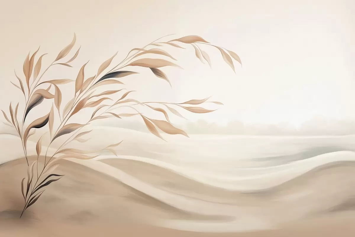 Fototapeta Delikatny pejzaż z gałęzią nad wzgórzami w jasnych beżowych odcieniach Nr w05297
