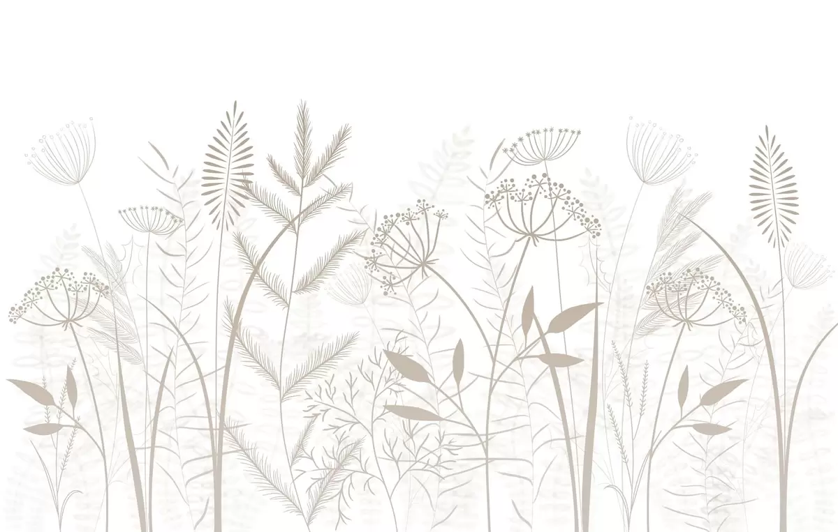 Fototapeta delikatne, ręcznie malowane dzikie trawy i kwiaty na białym tle Nr w05383v2