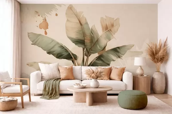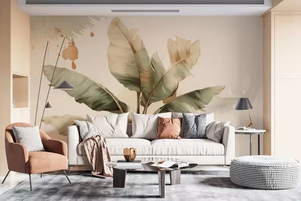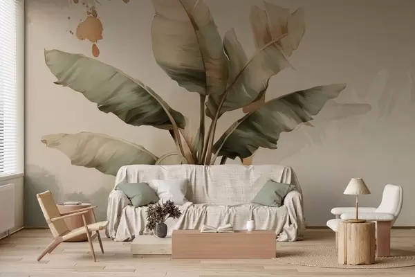 Fototapeta duża, malownicza kompozycja z liści bananowca z plamami w stylu retro Nr w05384