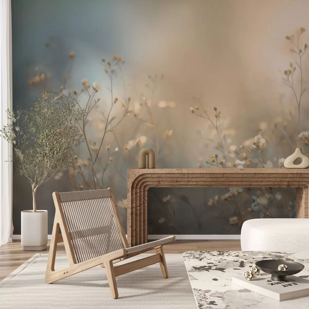 Fototapeta trawy polne o drobnych kwiatach na tle płytkiej głębi ostrości Nr w05386