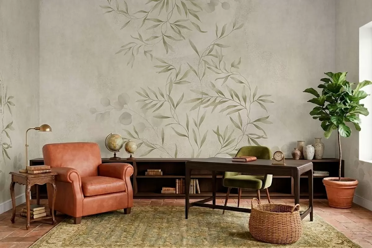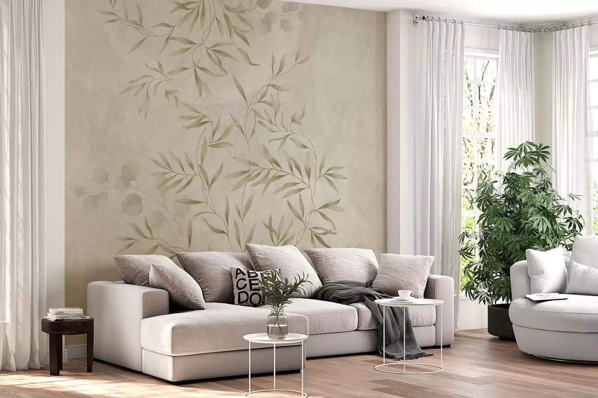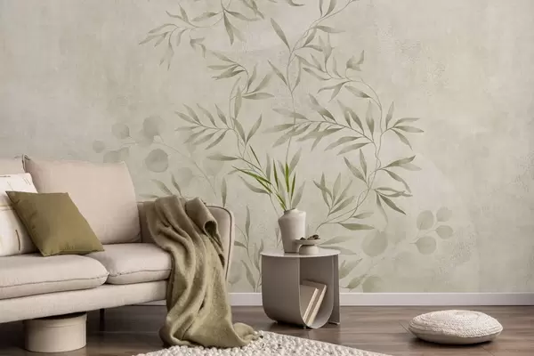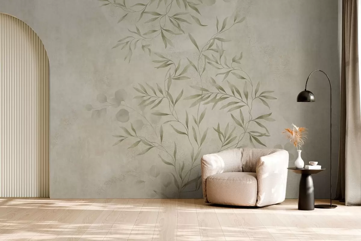 Fototapeta Motyw roślinny w jasnozielonych odcieniach na teksturowanym tle Nr w05424v1