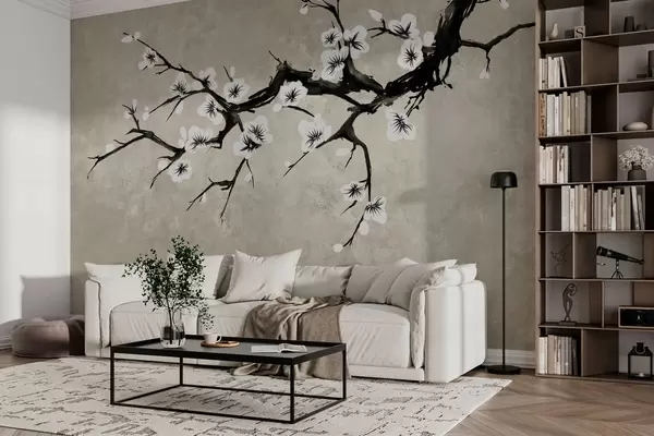 Fototapeta Gałązka z białymi kwiatami w minimalistycznym stylu Nr w05425