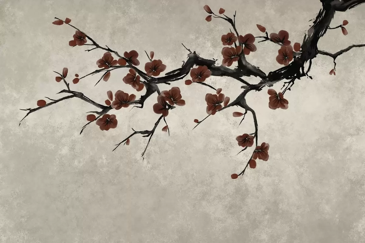 Fototapeta Gałązka z ciemnoczerwonymi kwiatami na neutralnym tle Nr w05425v1
