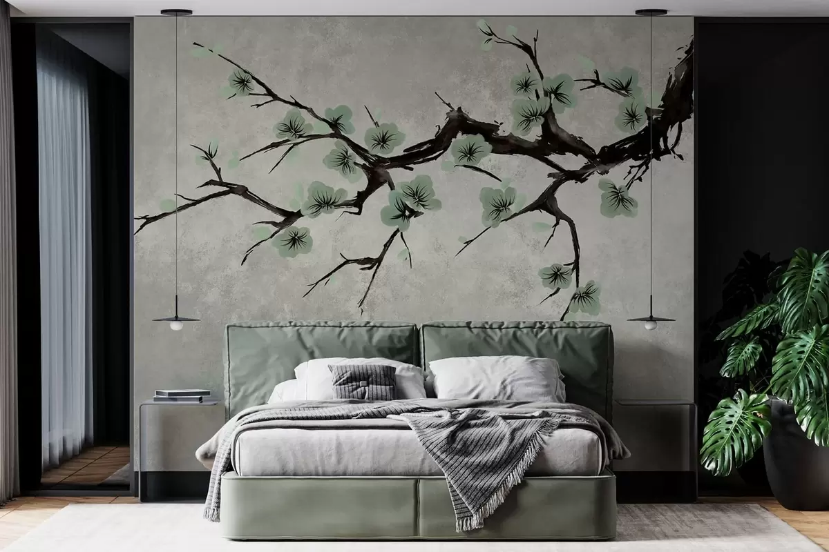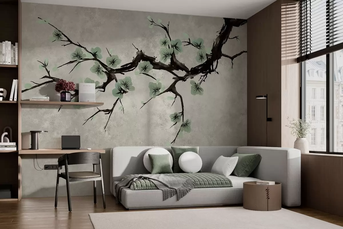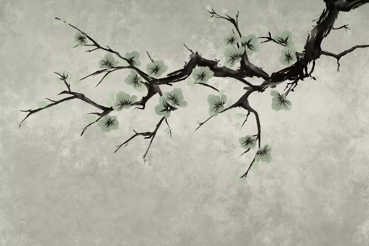Fototapeta Gałązka z zielonymi kwiatami w stonowanych barwach Nr w05425v2