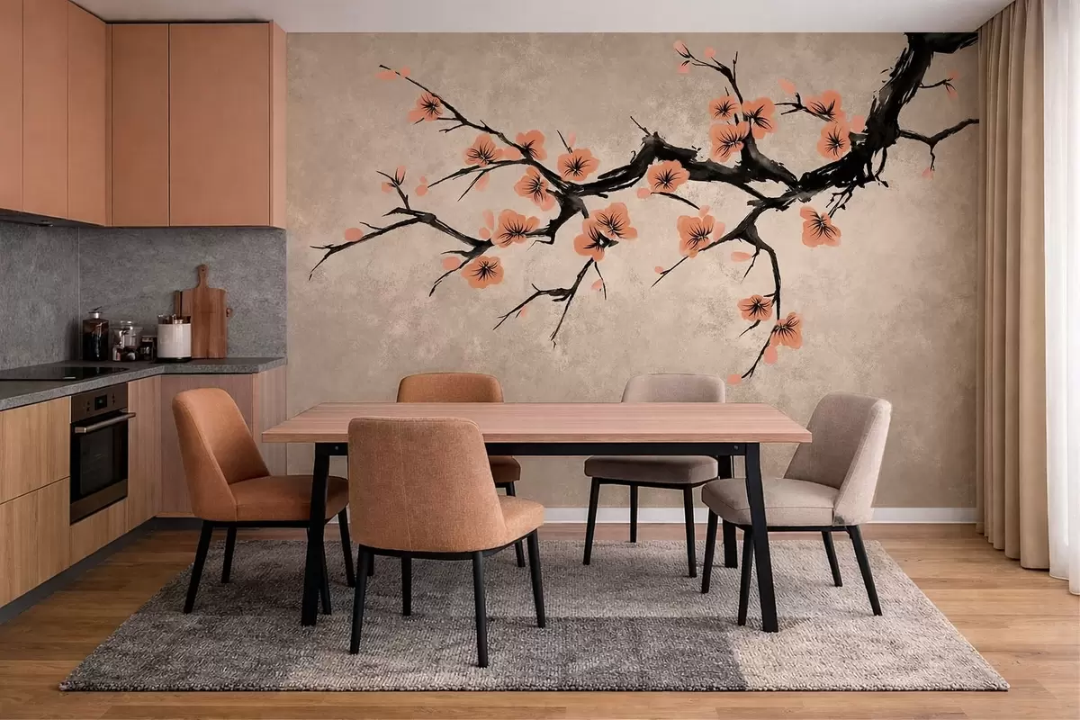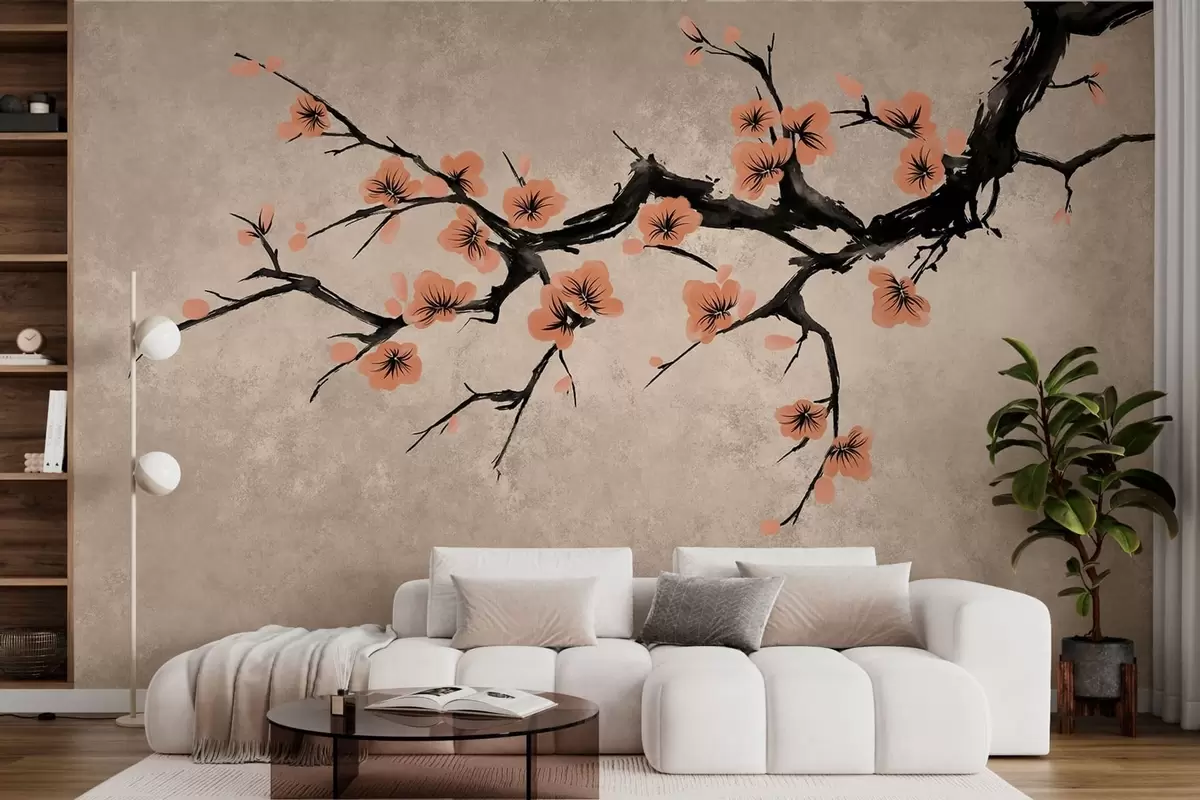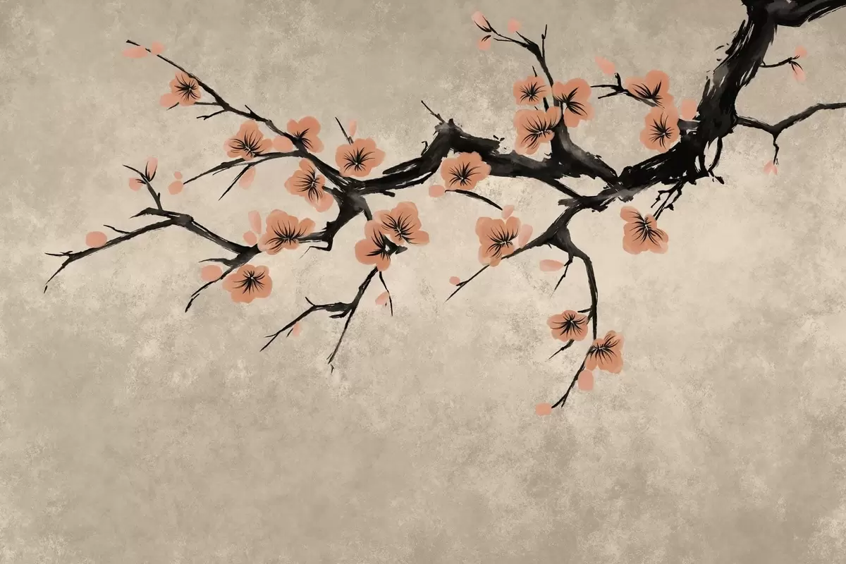 Fototapeta Gałązka z kwiatami brzoskwini na teksturowanym tle Nr w05425v3