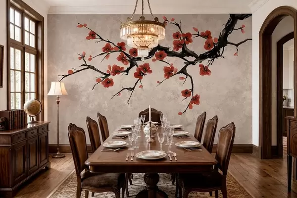 Fototapeta Gałązka kwitnąca w stylu orientalnym na beżowym tle Nr w05425v4