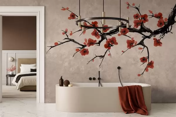 Fototapeta Gałązka kwitnąca w stylu orientalnym na beżowym tle Nr w05425v4