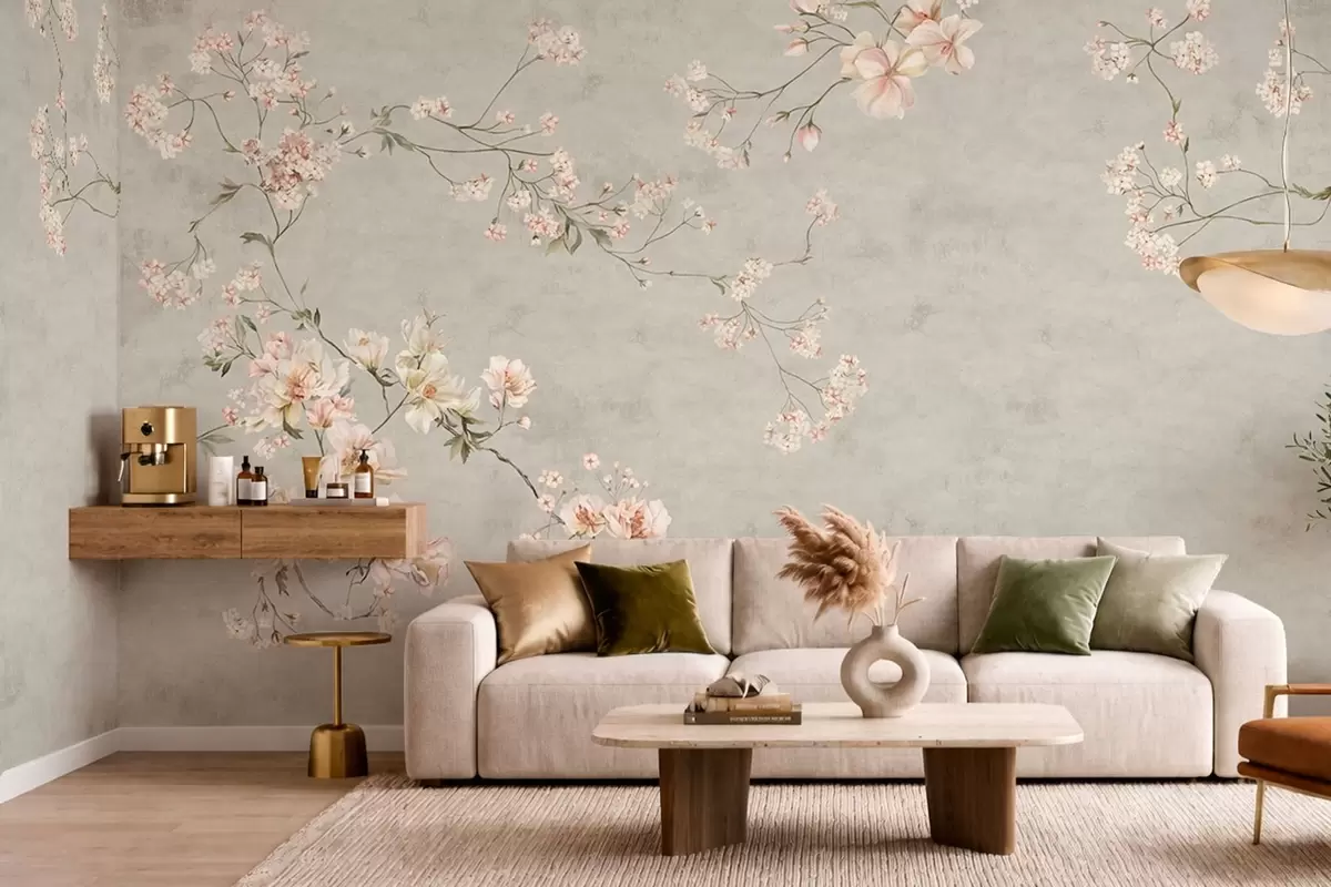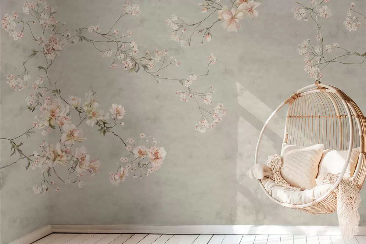 Fototapeta Kwiatowe motywy w stylu chinoiserie na szarym tle Nr w05427v1
