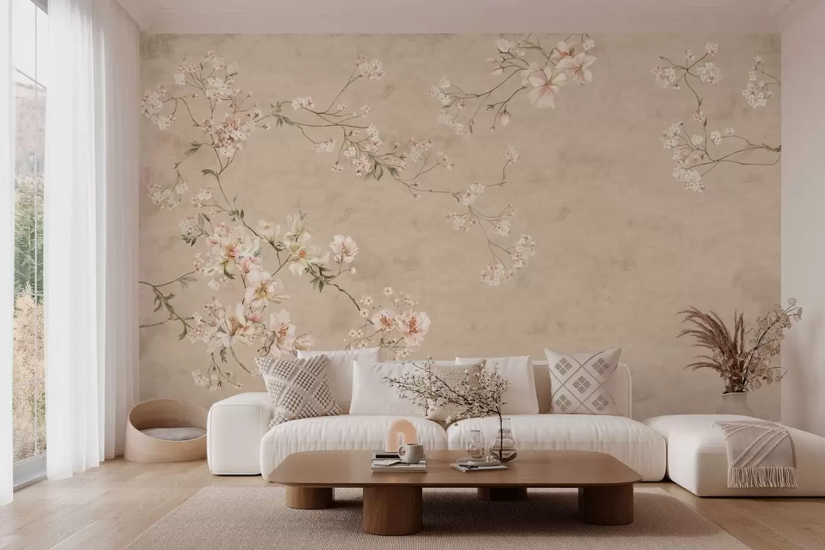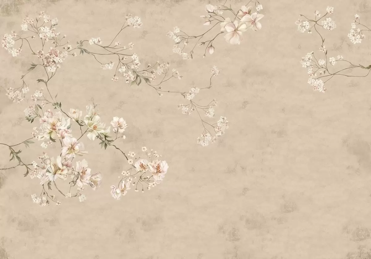 Fototapeta Kwiatowe motywy w stylu chinoiserie na ciepłym beżowym tle Nr w05427v2