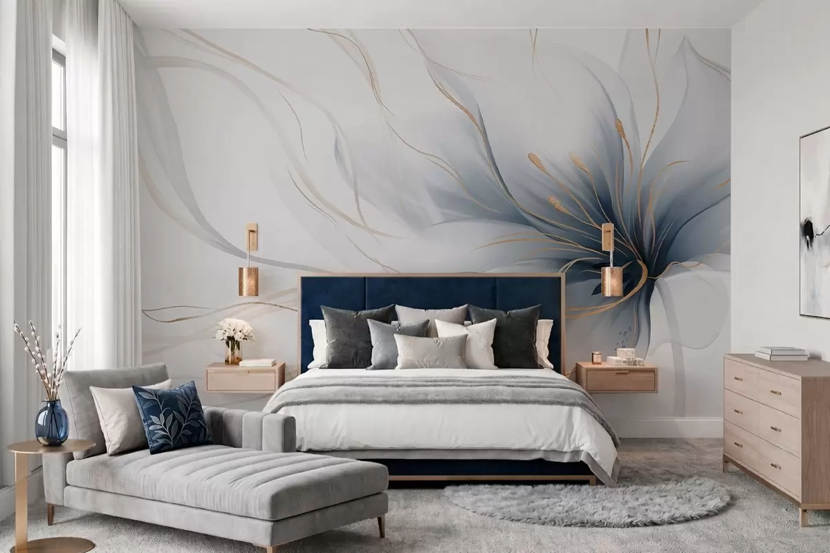 Fototapeta Abstrakcyjny niebieski kwiat o płynnych liniach w stylu Fluid Art Nr w05428