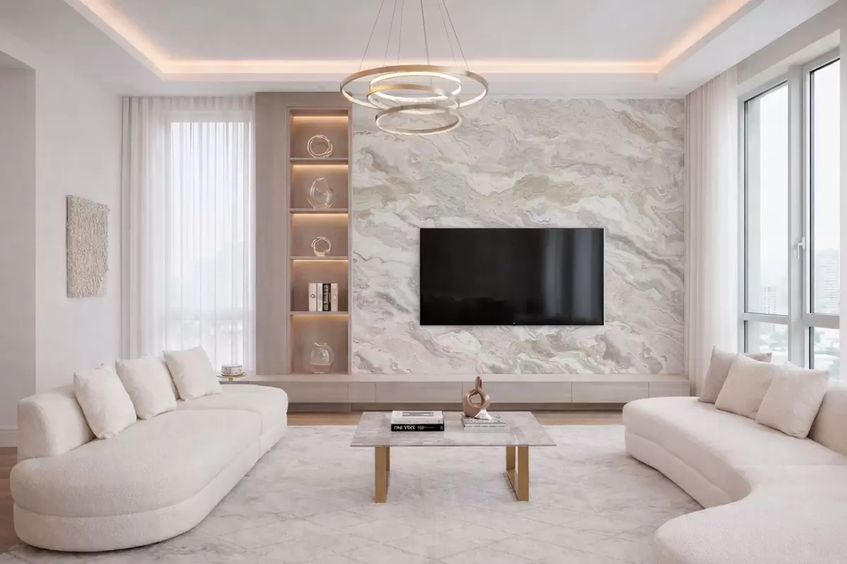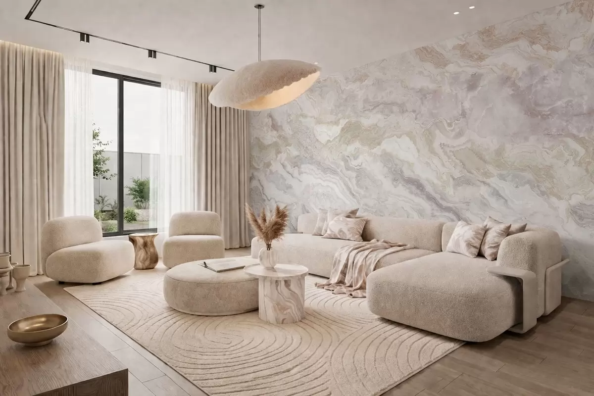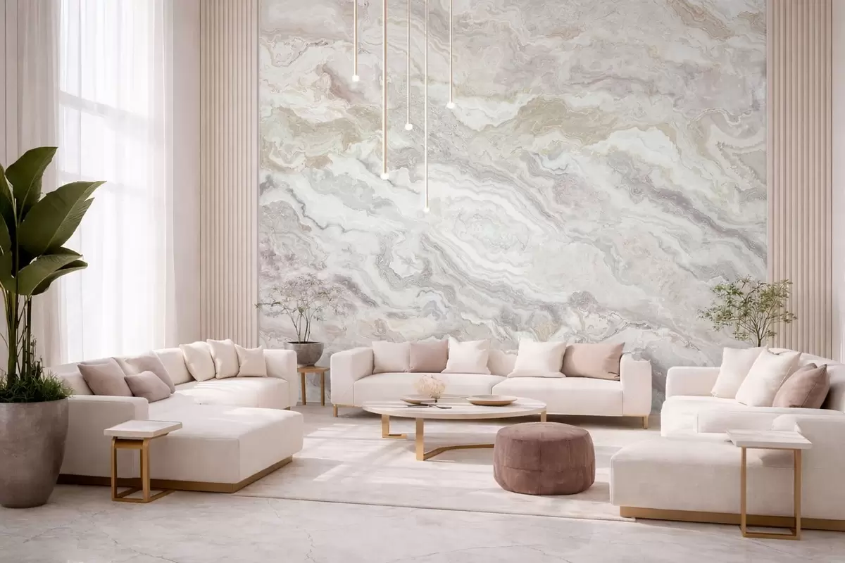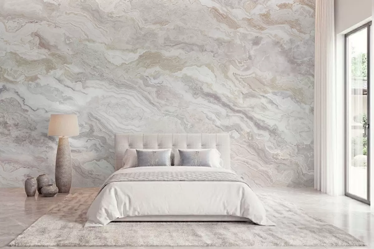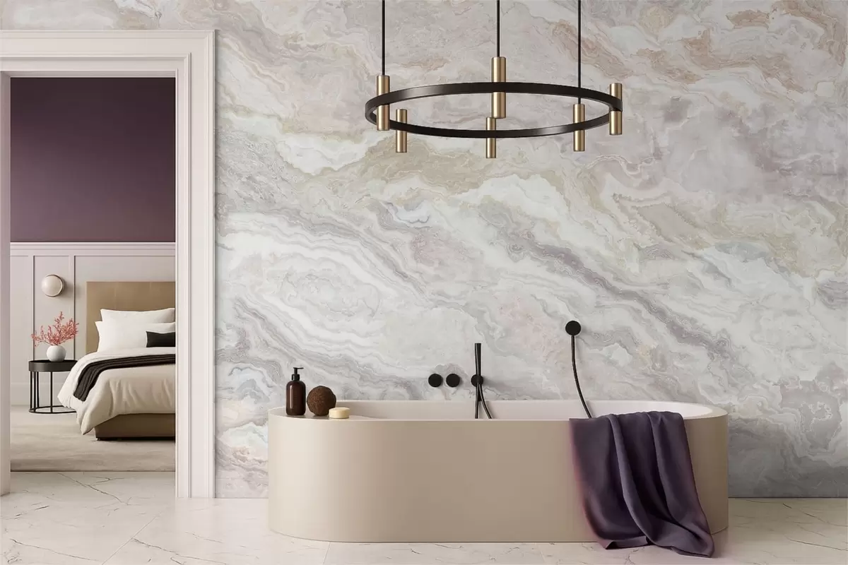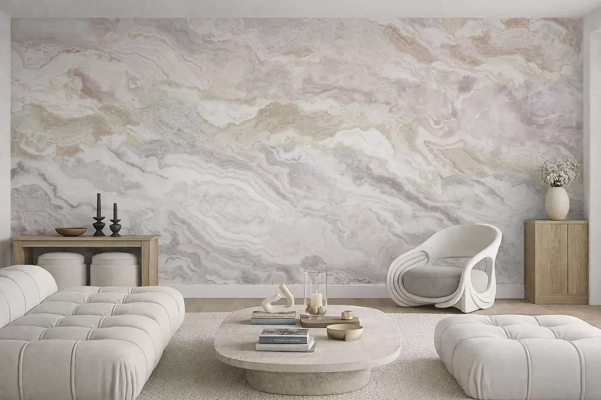 Fototapeta Jasny onyks z płynnymi warstwami w odcieniach beżu i szarości Nr w05430
