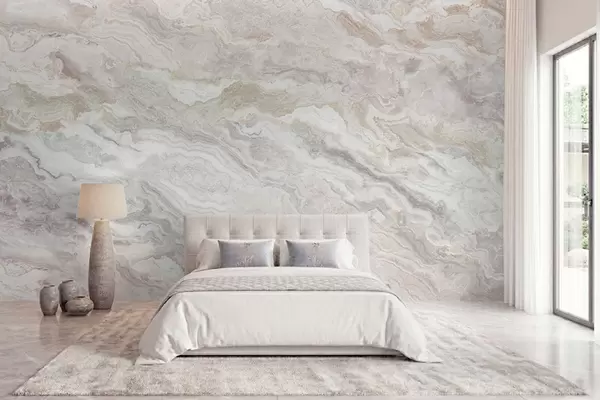 Fototapeta Jasny onyks z płynnymi warstwami w odcieniach beżu i szarości Nr w05430