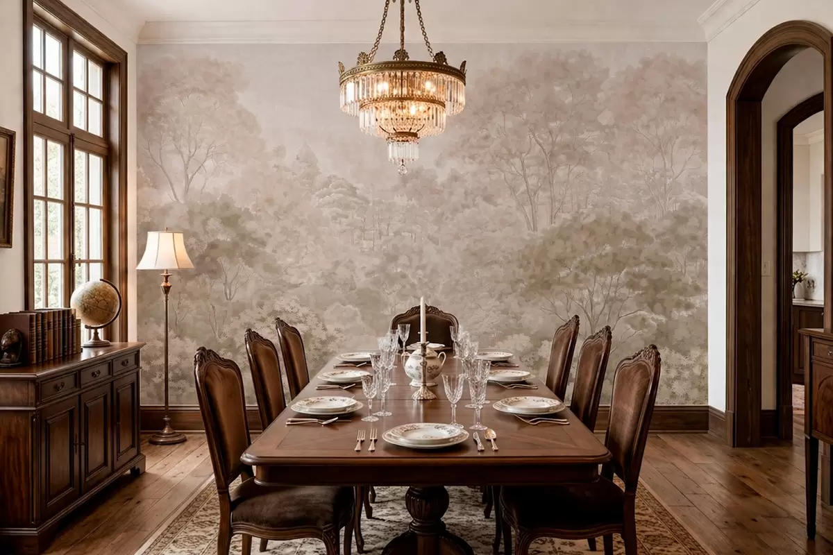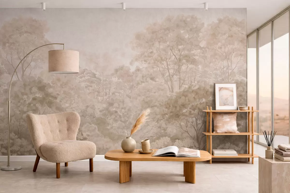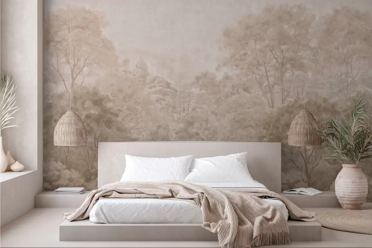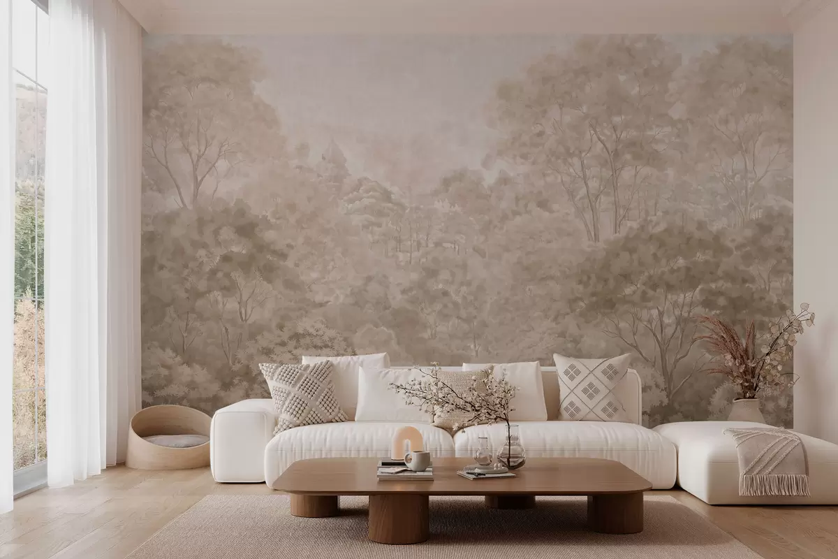 Fototapeta Klasyczny leśny krajobraz w ciepłych beżowych odcieniach Nr w05433v1