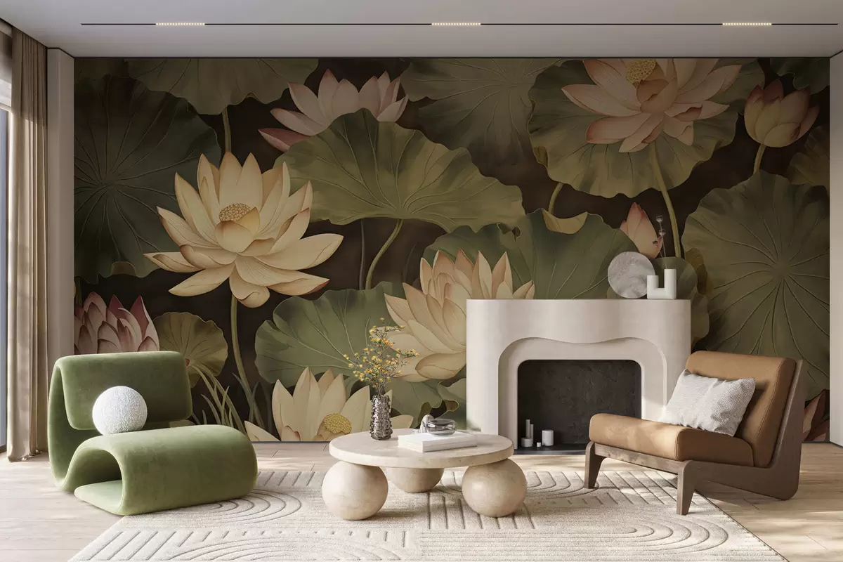 Fototapeta Kwiaty lotosu w stylu vintage Nr w05445