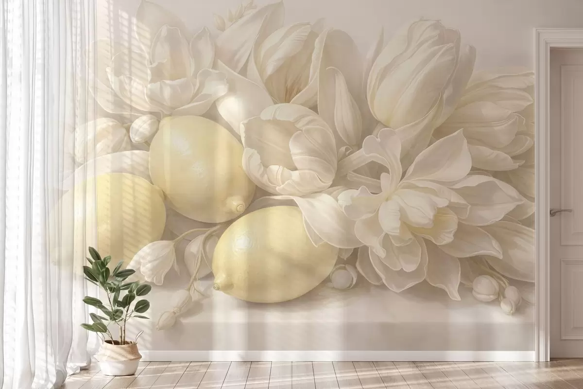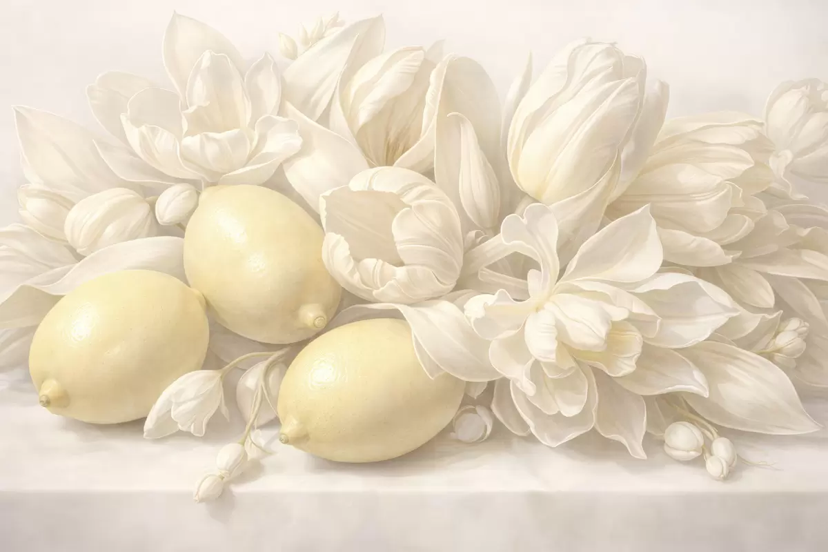 Fototapeta Delikatny bukiet kwiatowy z cytrynami Nr w05449
