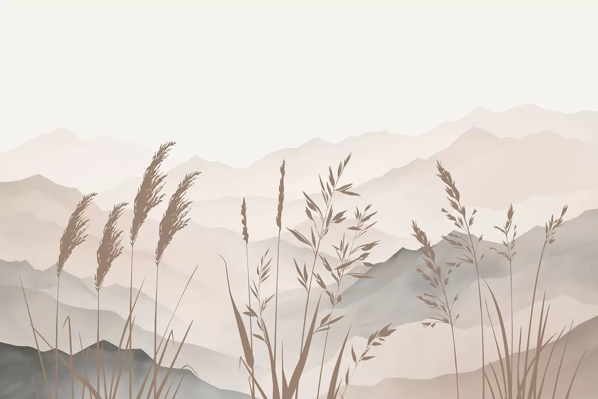 Fototapeta Sylwetki trawy na tle gór Nr w05501v1
