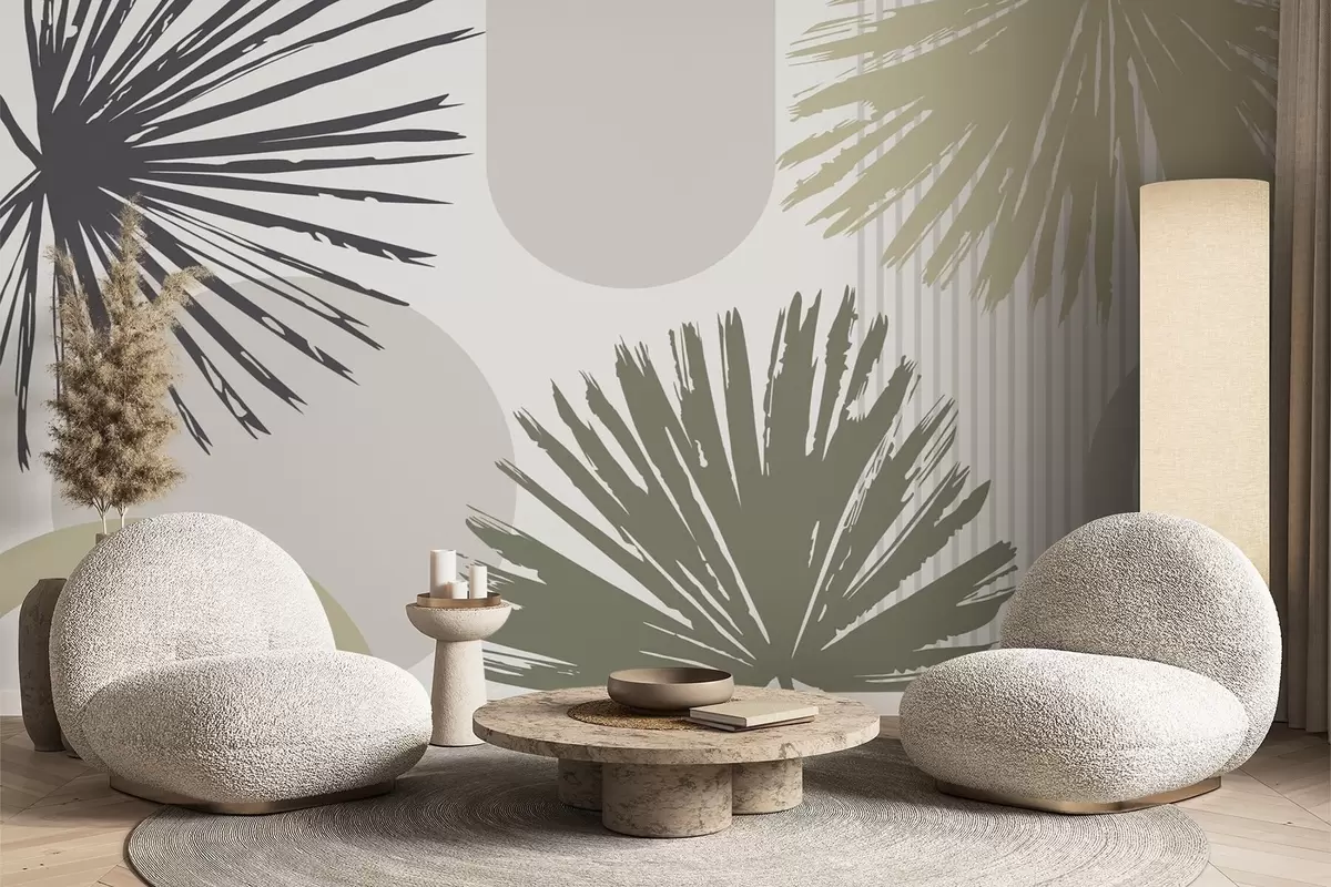 Fototapeta Abstrakcja z motywami roślinnymi i geometrycznymi sylwetkami Nr w05505v2