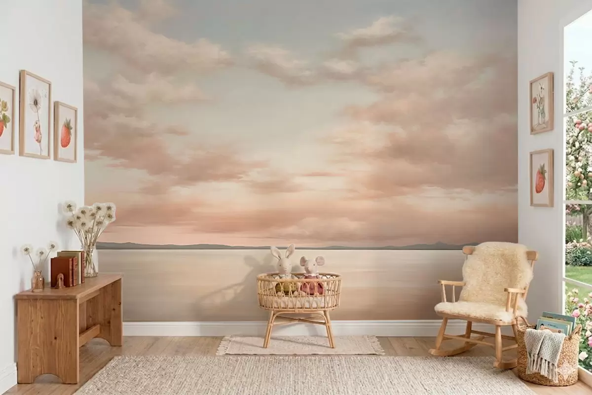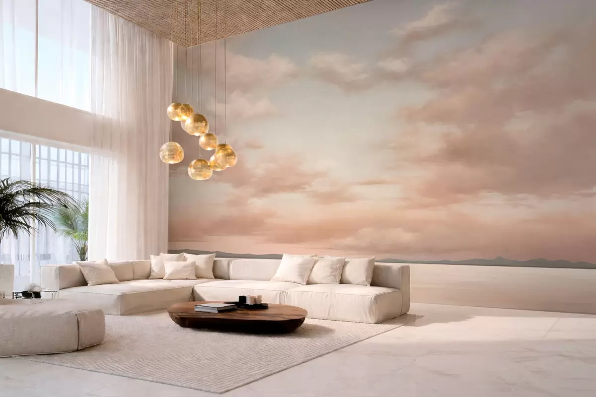 Fototapeta Minimalistyczny widok morza z horyzontem i pastelowymi chmurami Nr w05516