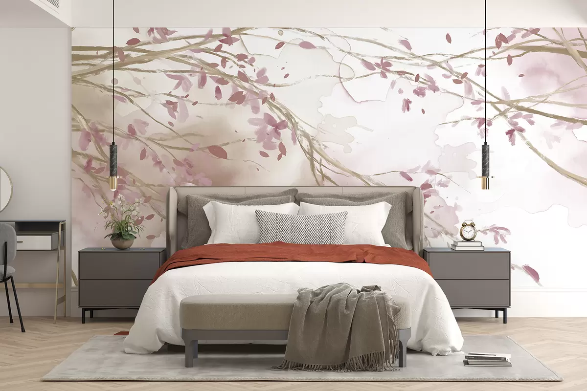 Fototapeta Delikatne różowe i białe gałązki kwiatowe z miękkim, rozmytym akwarelowym tłem Nr w07919v1