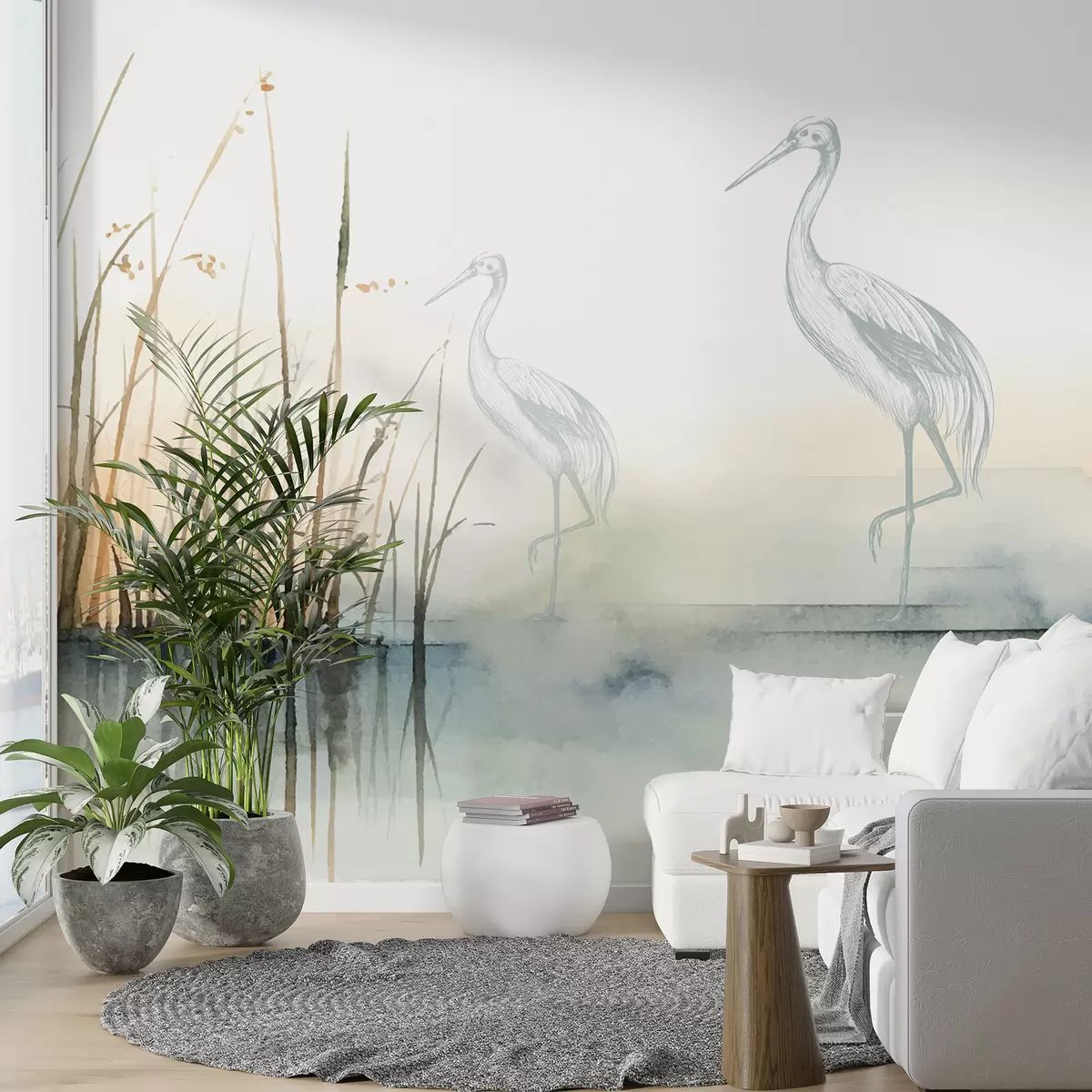 Fototapeta Akwarela trzciny i czaple Nr w08078